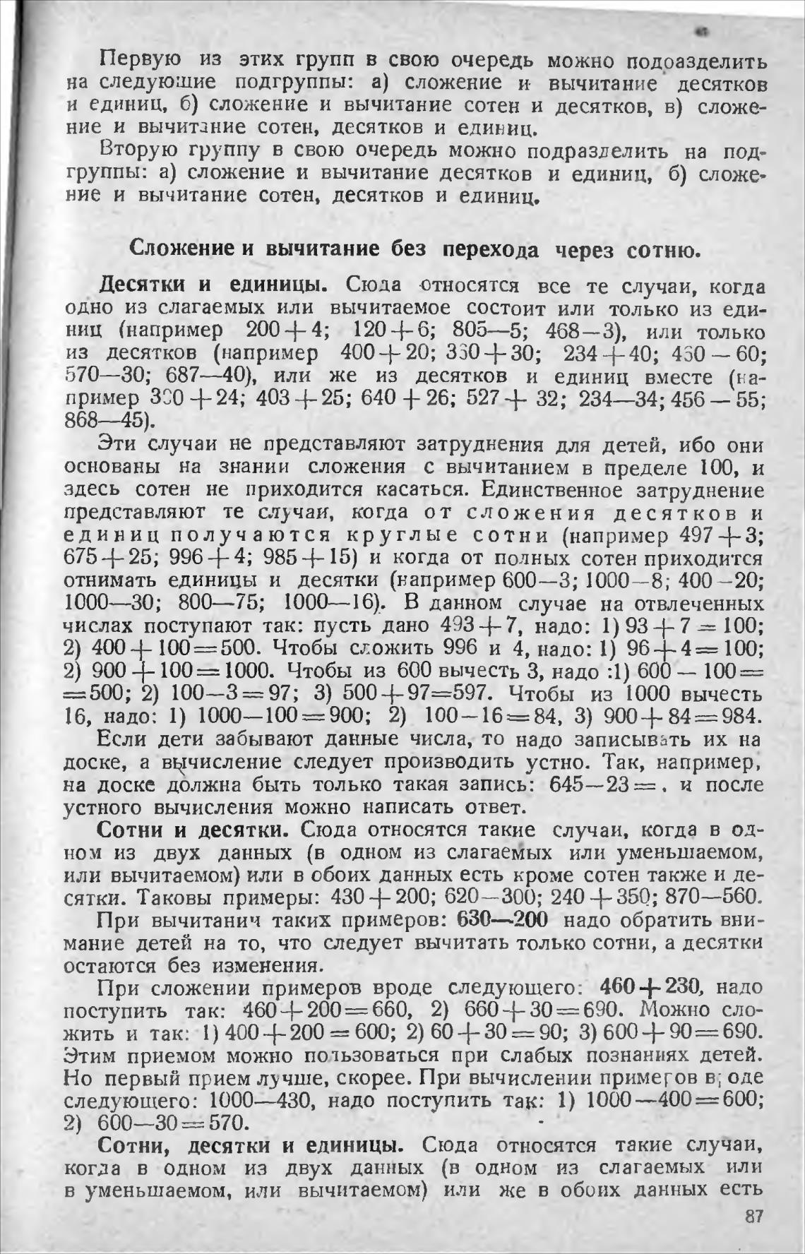 Сложение и вычитание без перехода через сотню.