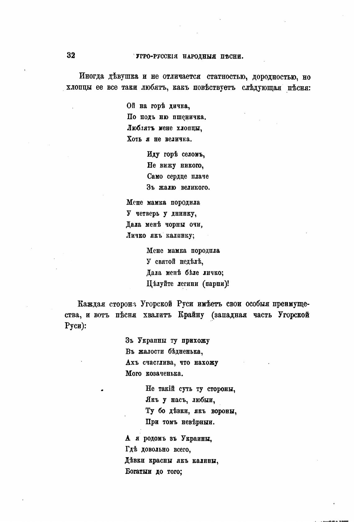 ства, и вотъ пВсна хвалить Крайну (западнаа часть Угорой
