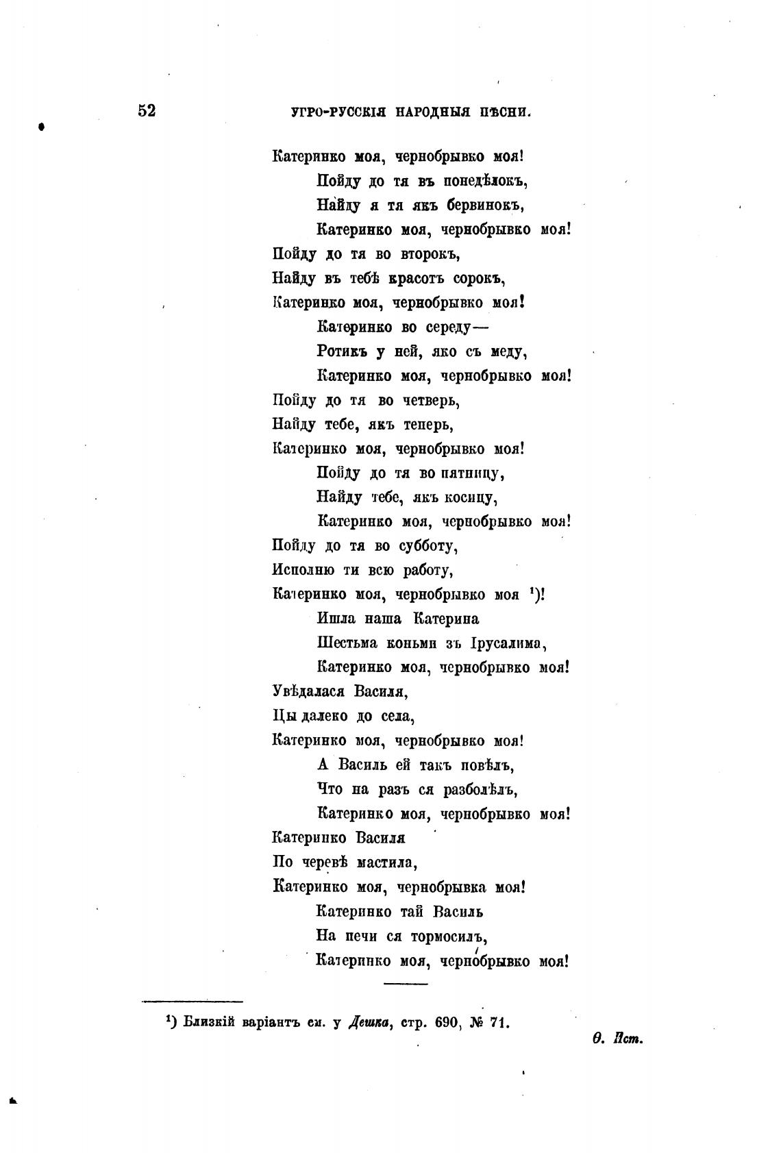 Катеринко моя, чернобрывко моя 1)!