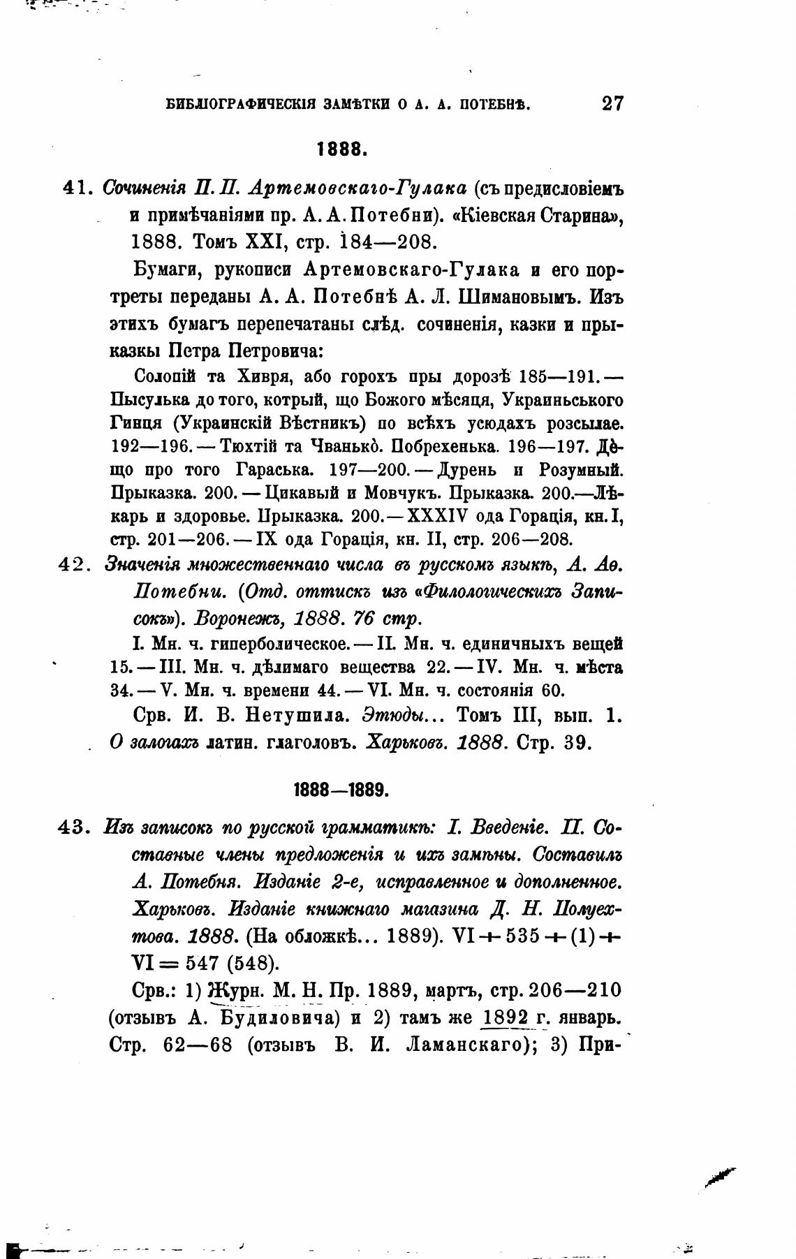 БИБШОГРАФИЧЕСЮЯ ЗАМВТКИ О А. А. ПОТЕБН•В.