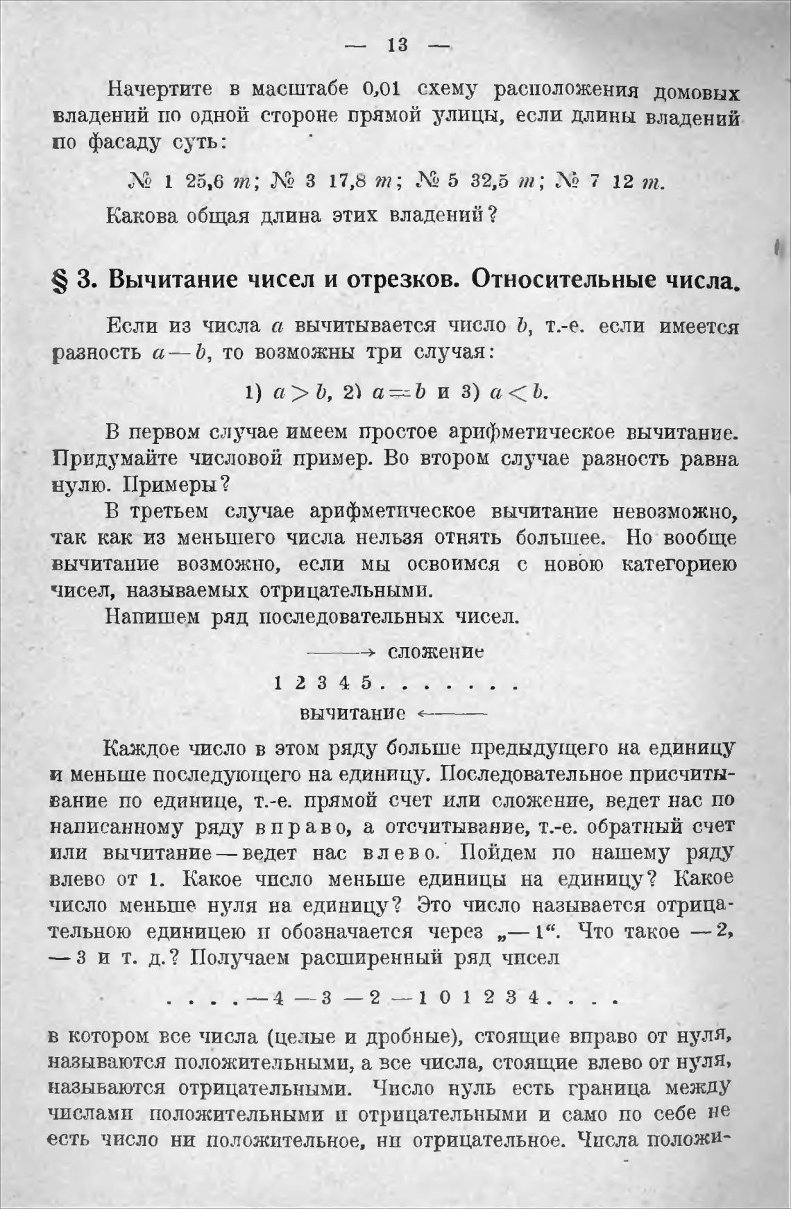 S З. Вычитание чисел и отрезков. Относительные числа.