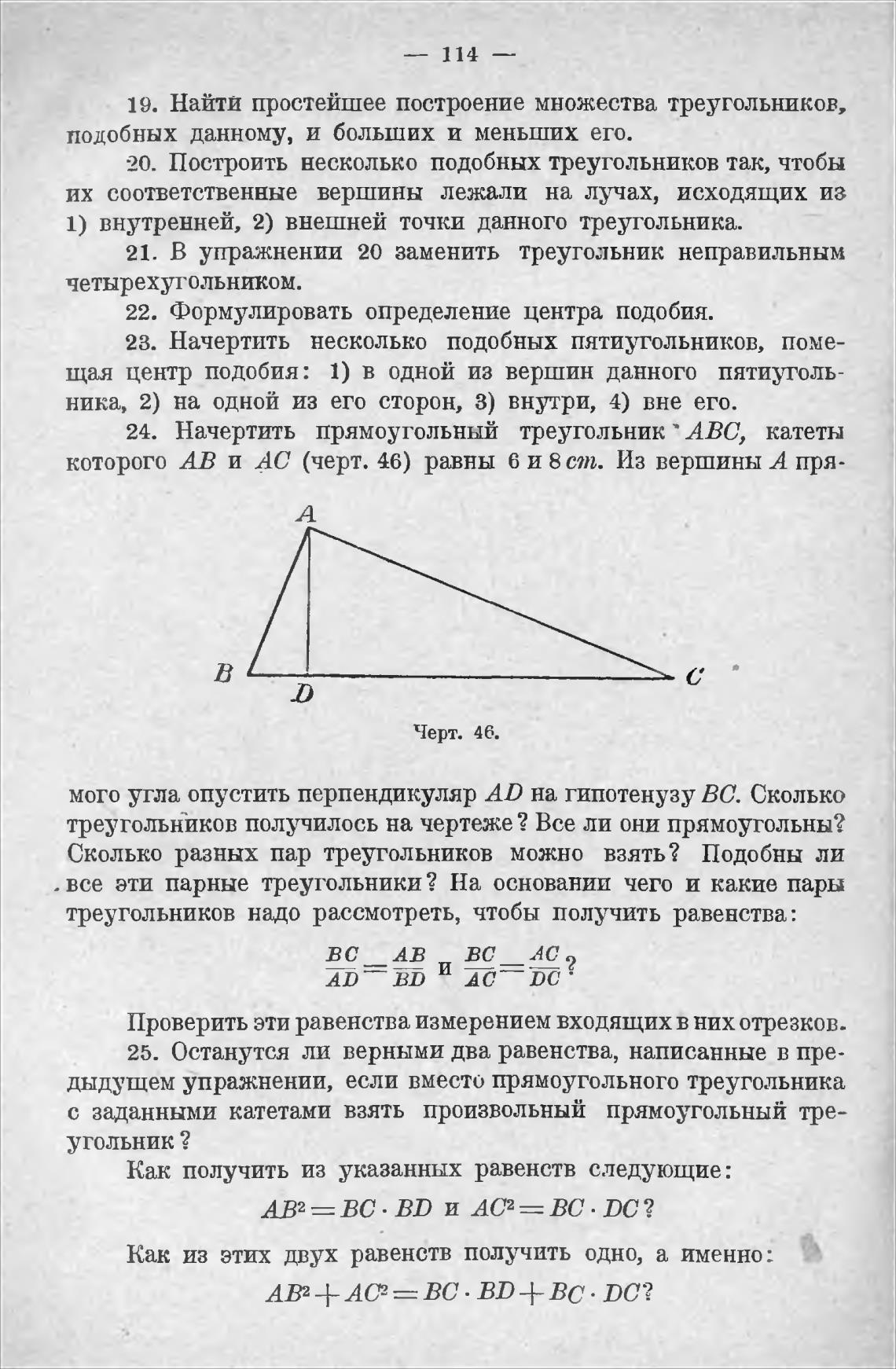 которого АВ и АС (черт. 46) равны 6 и 8 ст. Из вершинн А пря-