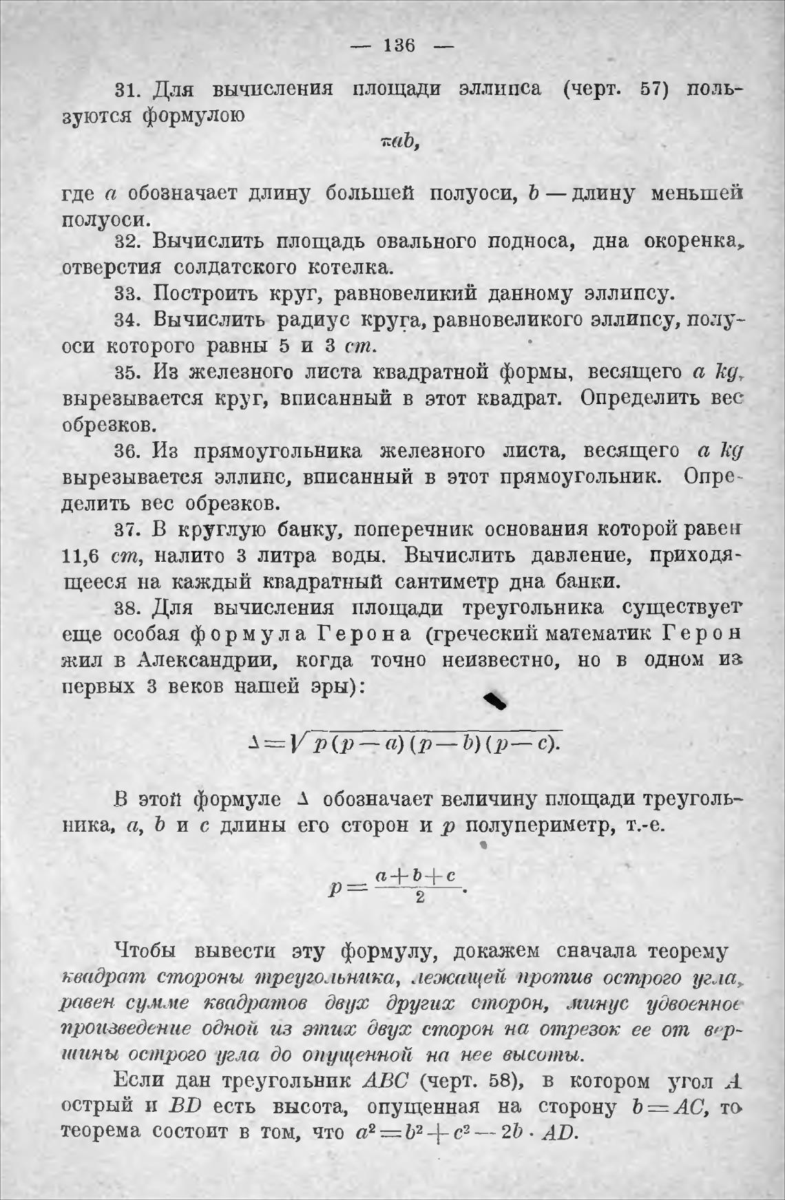 еще особая фор м ула Герона (греческий математик Гер о н