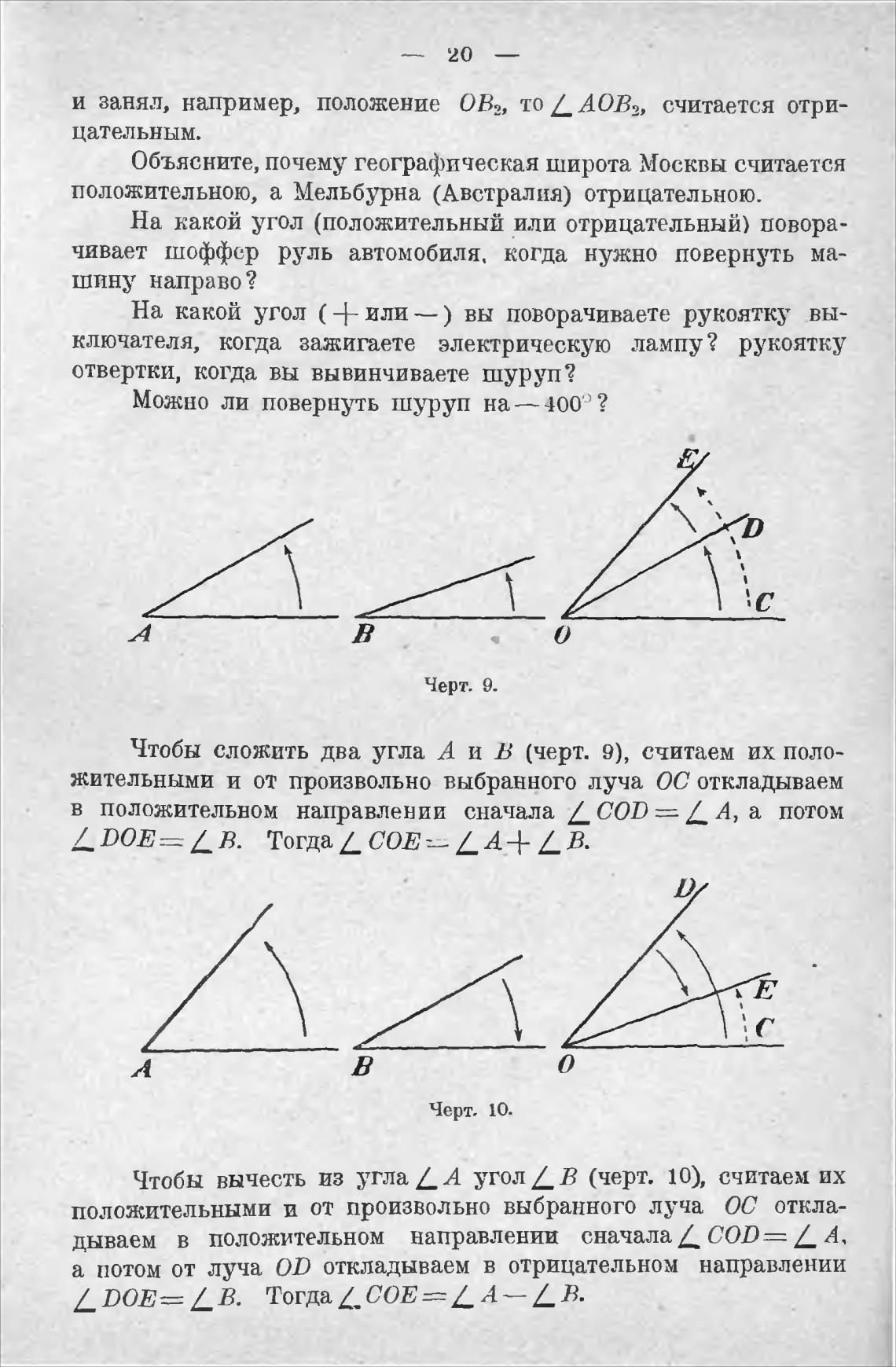 Чтобы сложить два угла А и В (черт. 9), считаем их поло-
