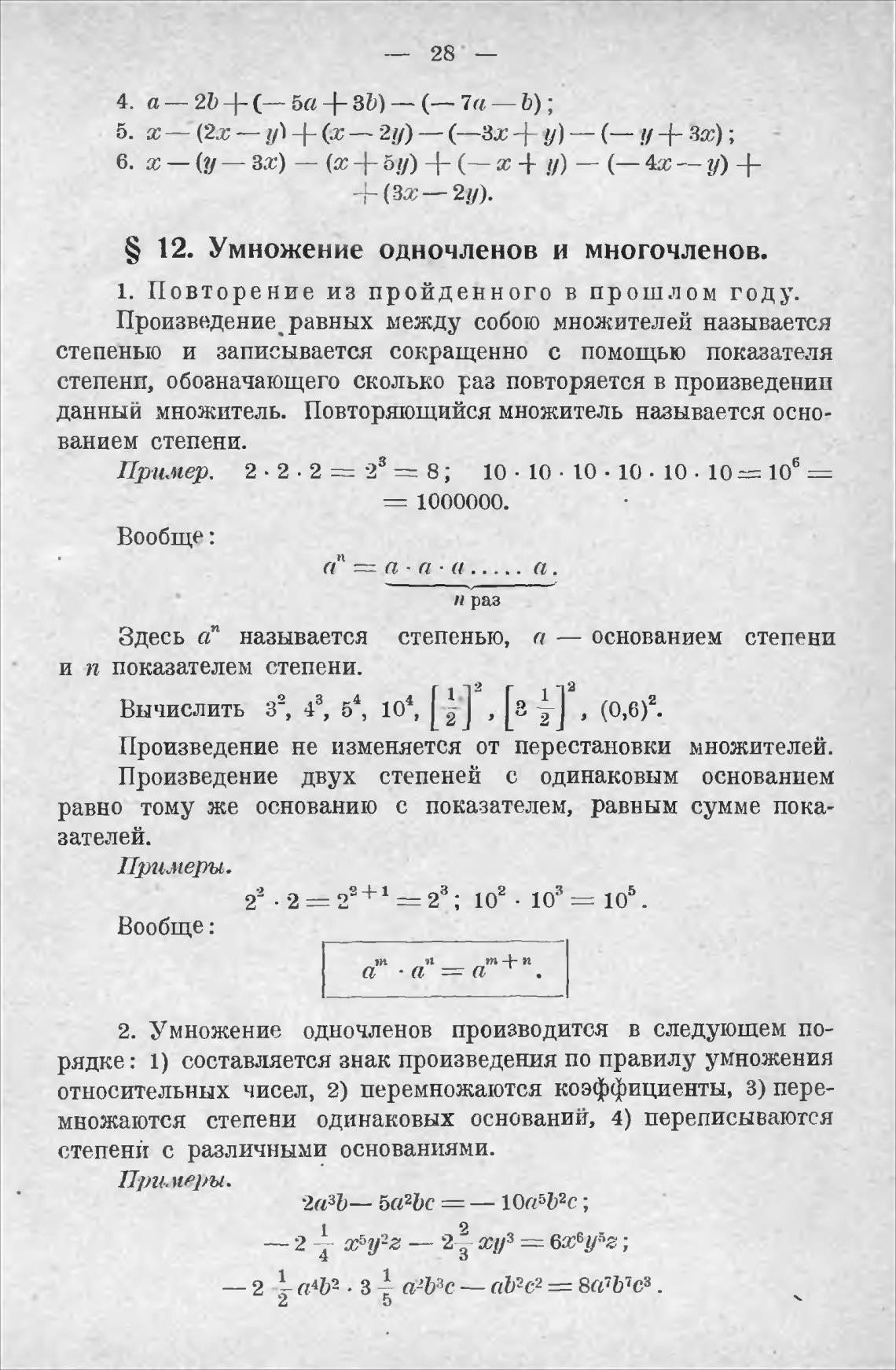 S 12. Умножение одночленов и многочленов.