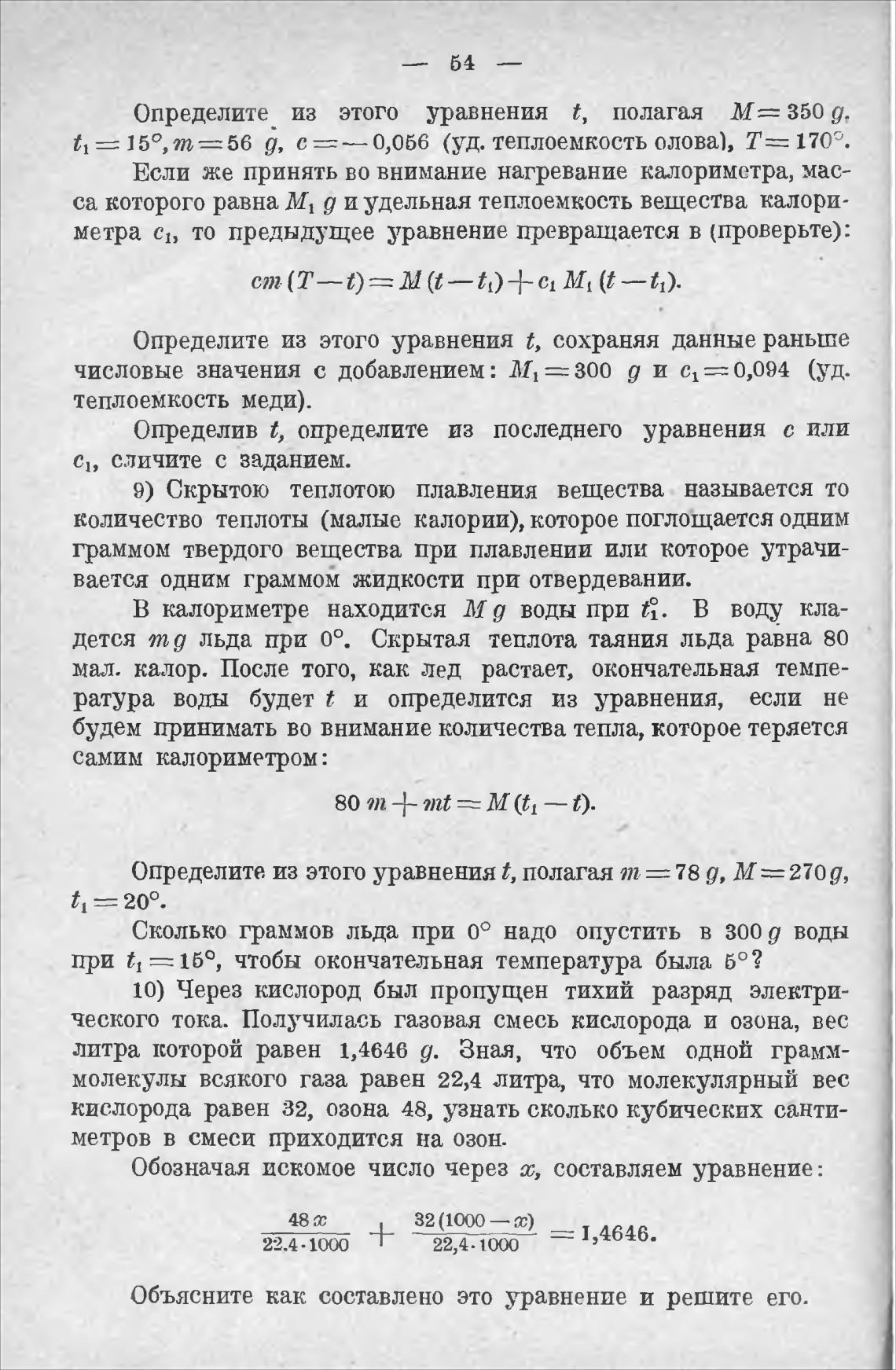 ратура воды будет t и определится из уравнения, если не