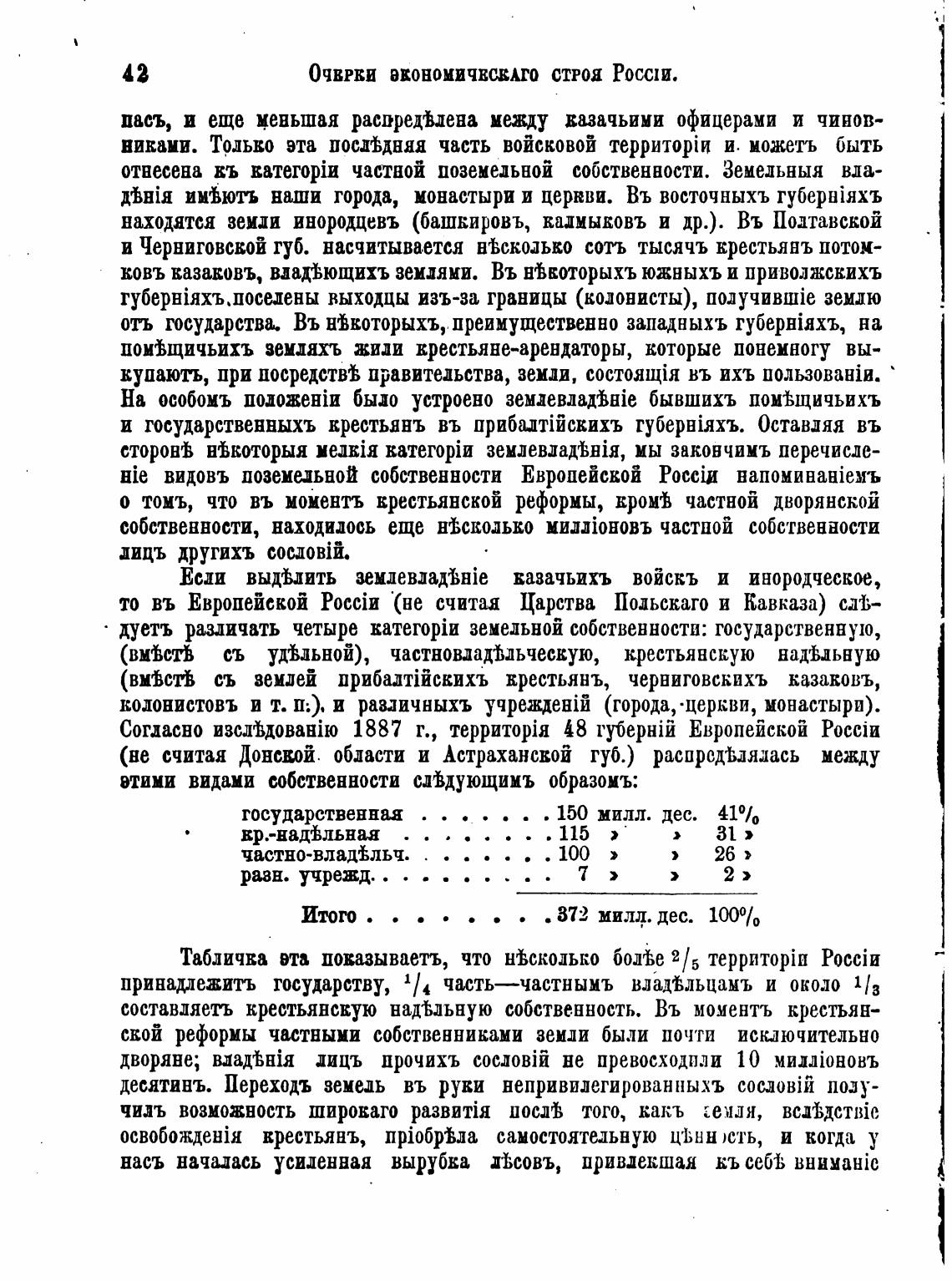 принадлежить государству, 1/4 часть—частнымъ владюьцамъ и около 1/3