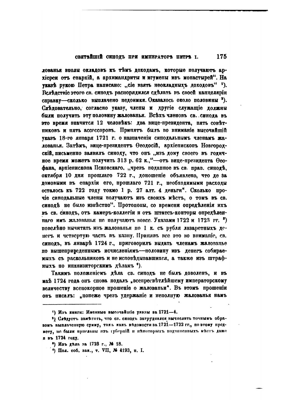 синодъ, въ январь 1724 г., ириговорилъ выдать членамъ жалованье