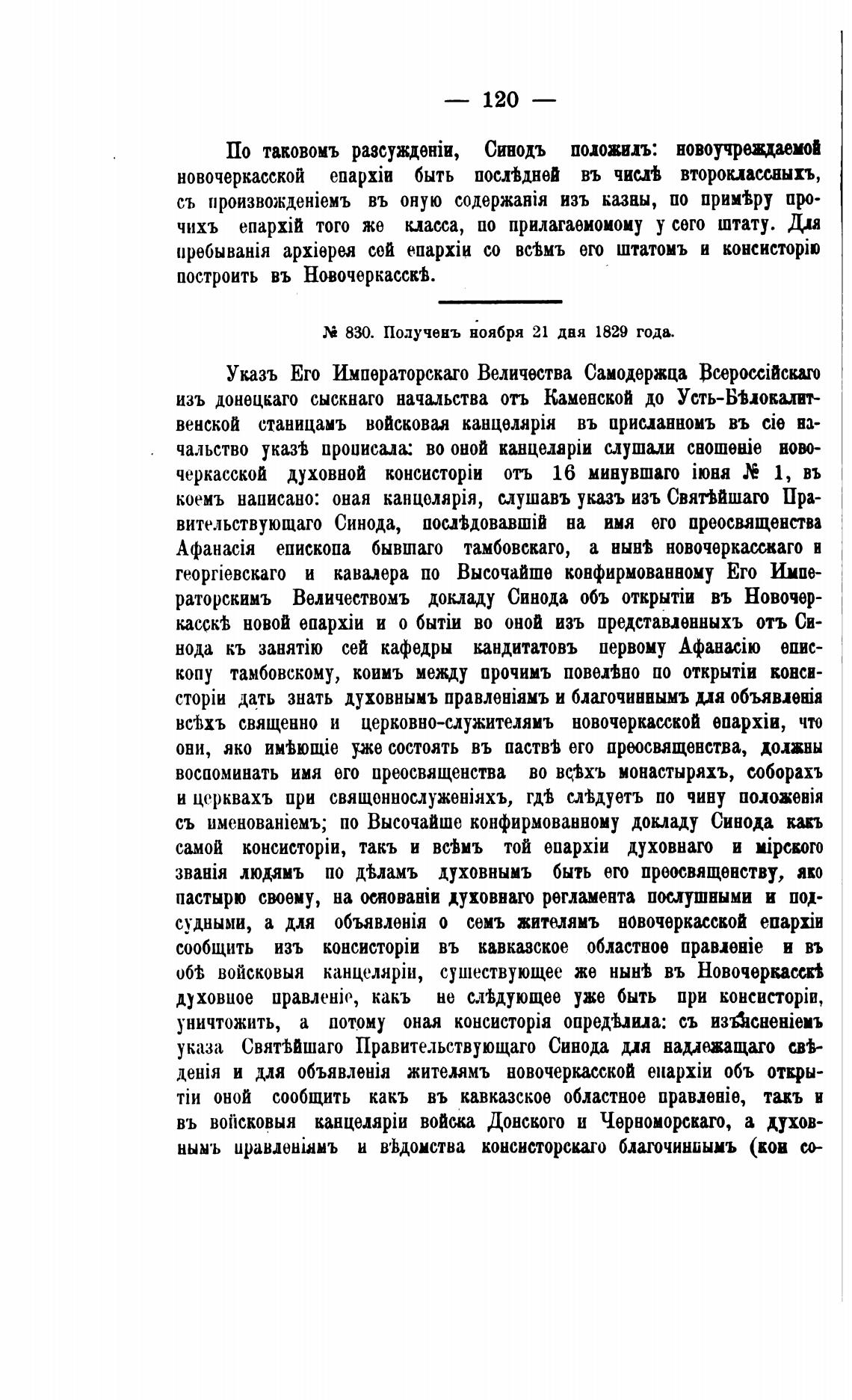 830. Получень ноября 21 дня 1829 года.