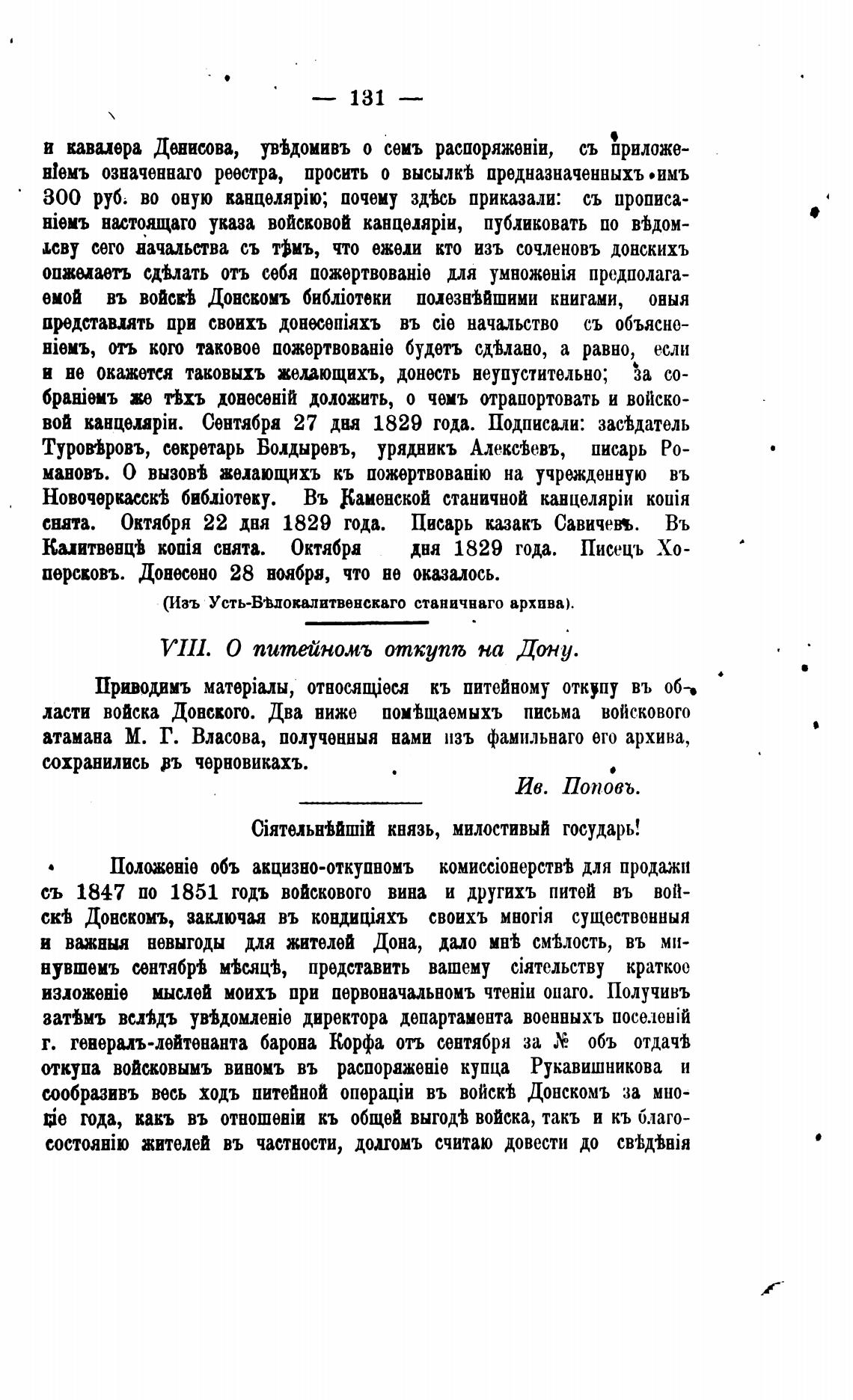 VII1. О питейномъ откупљ на Дону.
