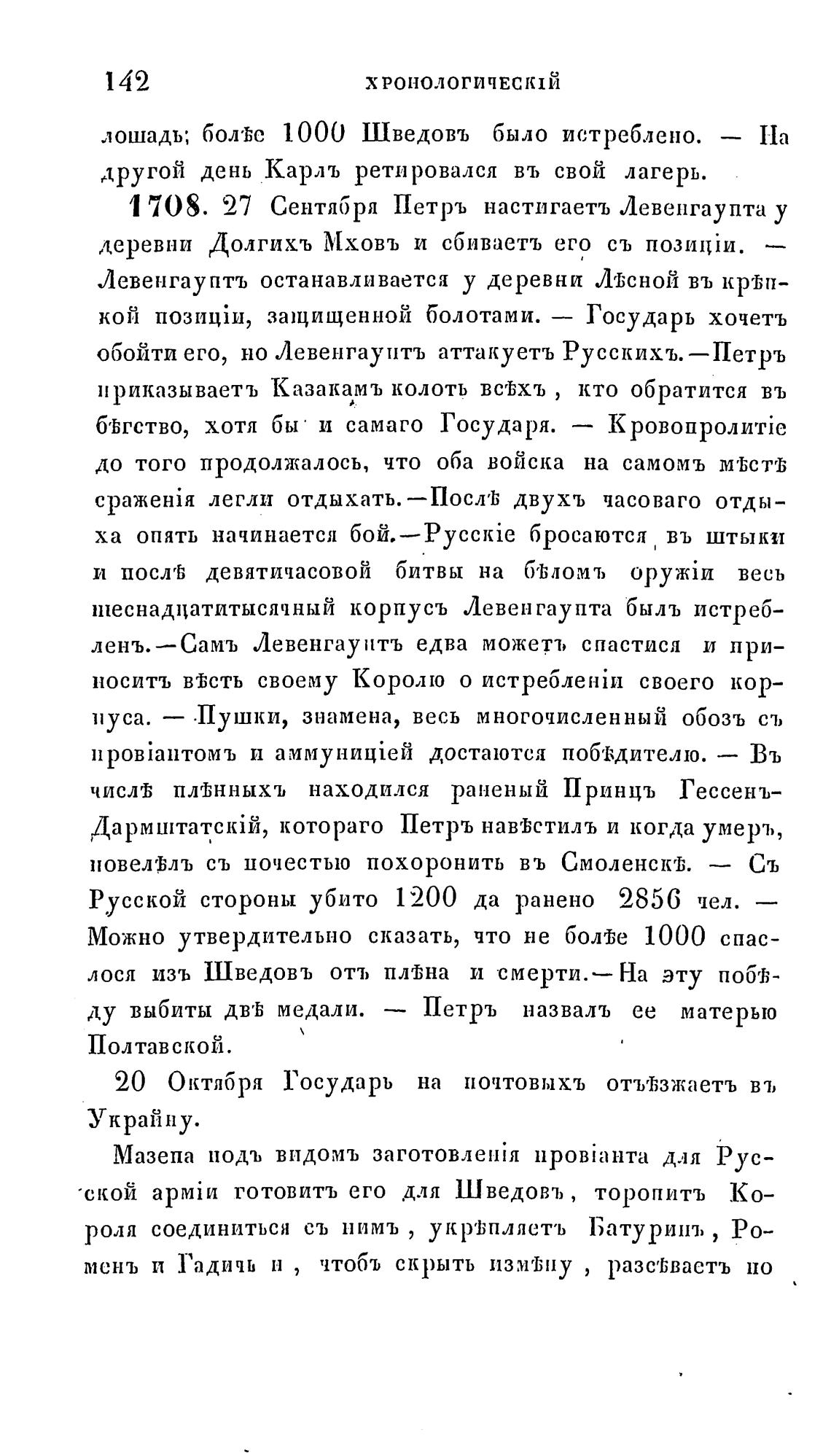 1 708. 27 Сентября Петръ настигаетъ Левенгаупта у