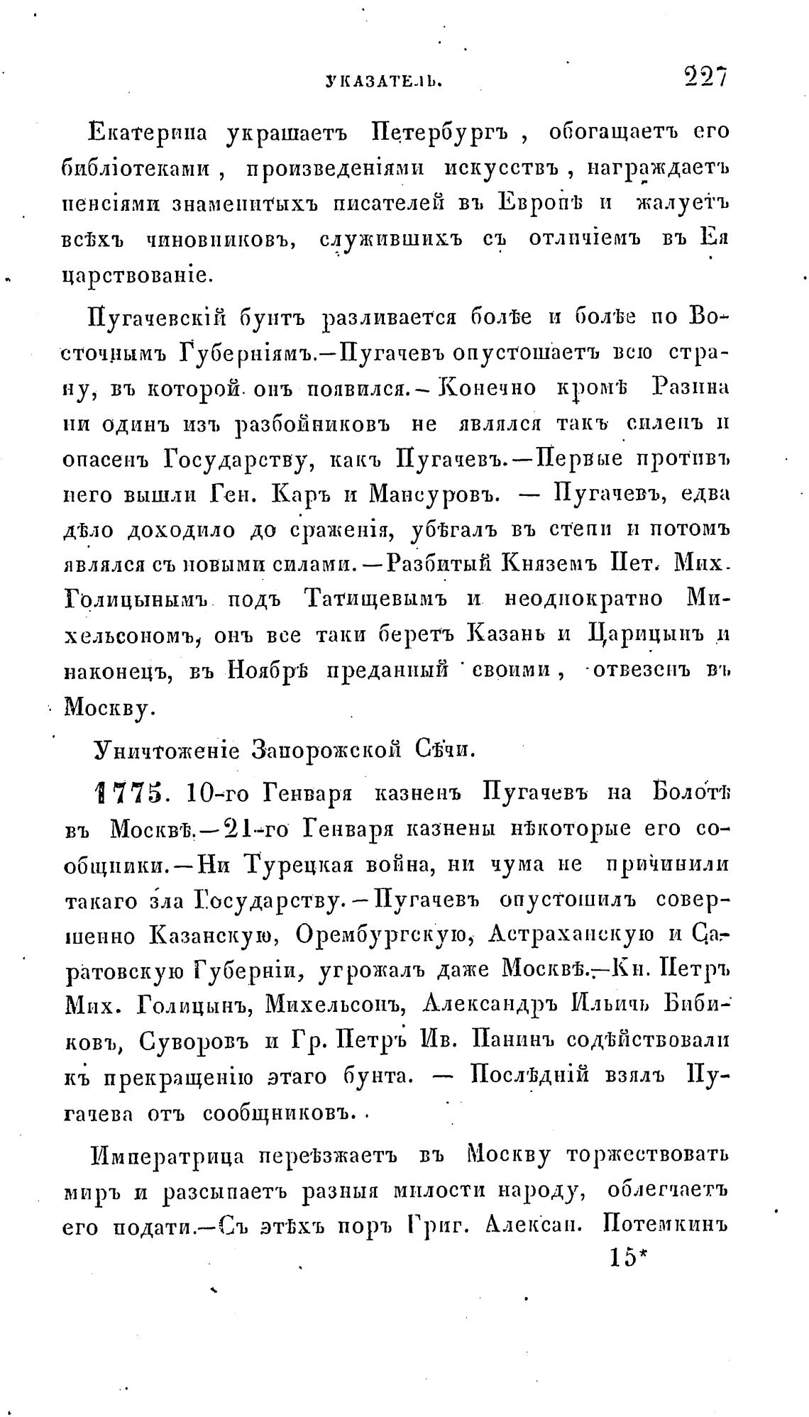 1 775. 10-го Генваря казненъ Пугачевъ на Болом;