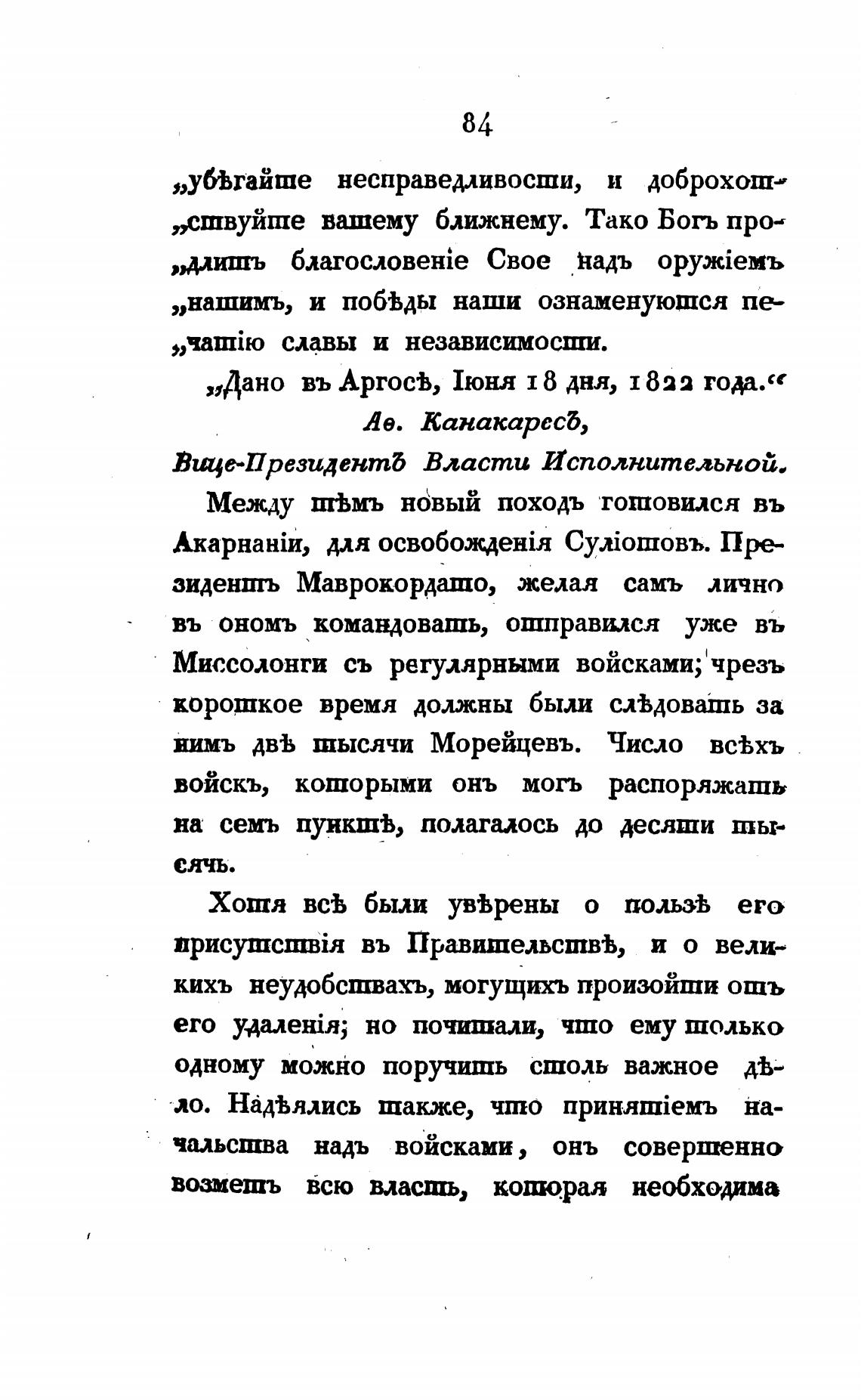 „Дано въ АргосЬ 1юнл 1 8 дня, 1822 года.“