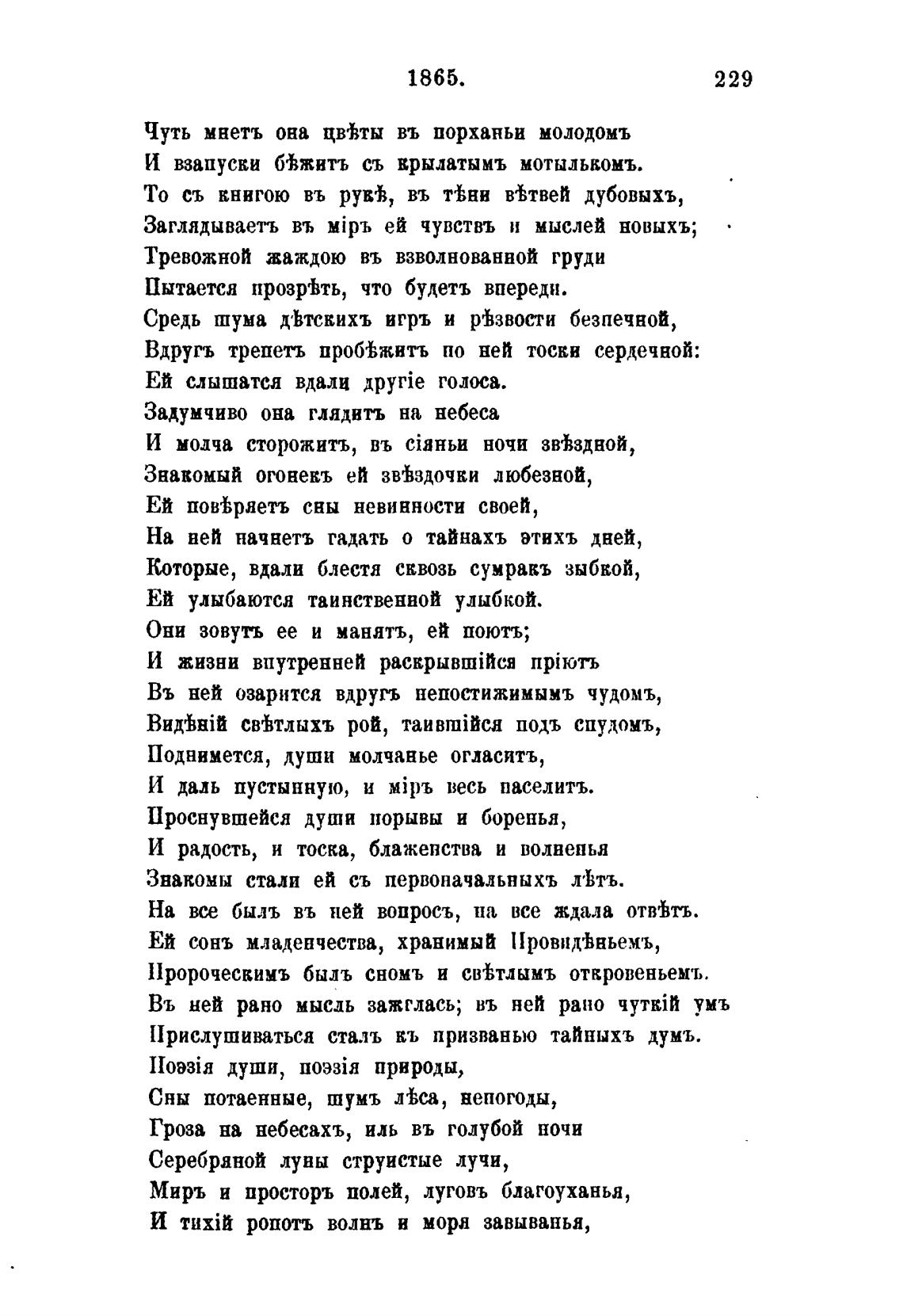 Заглядываетъ въ MiPb ей чувствъ и мыслей новыхъ;
