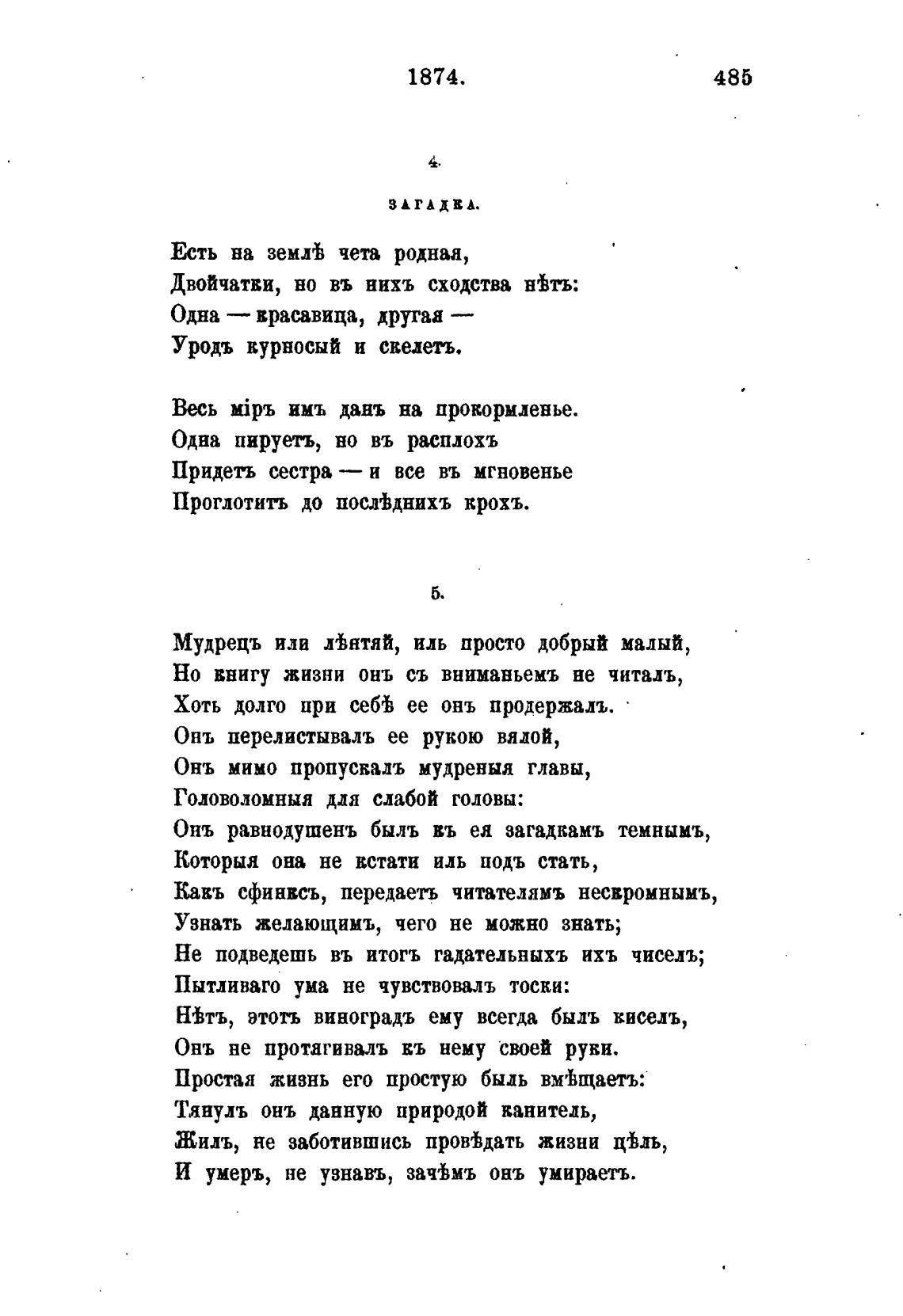 Онъ равнодушенъ быль въ ея загадкамъ темнымъ,