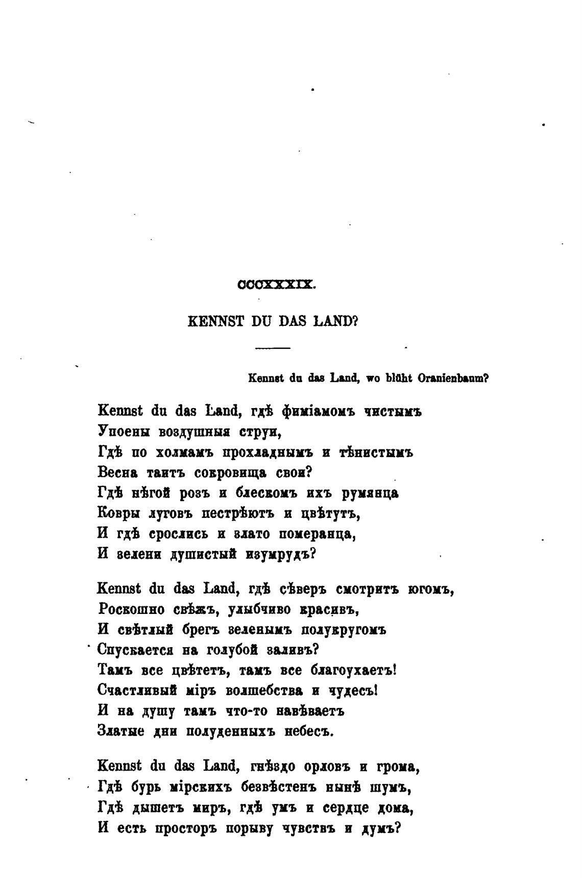kennst du das Land, с%веръ смотритъ югомъ,