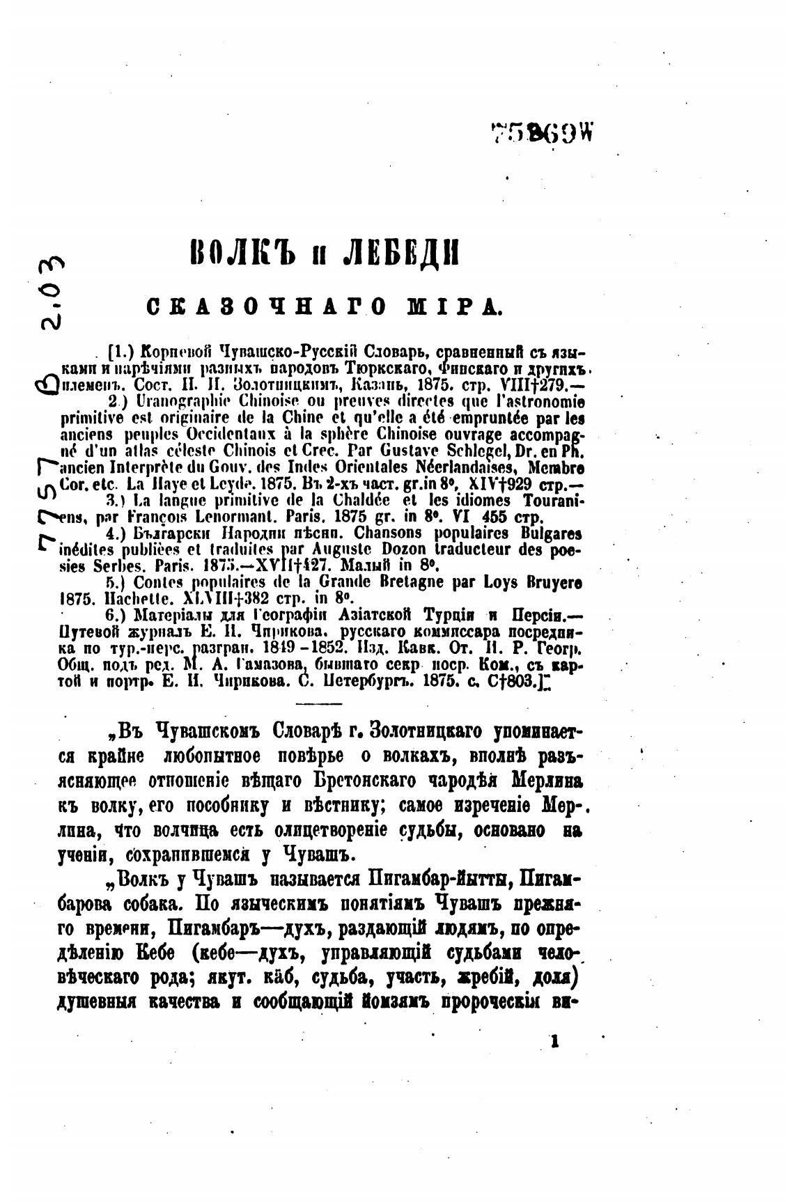 „Въ Чувашскомъ Сло* г. Золотвицкаго упоминает-
