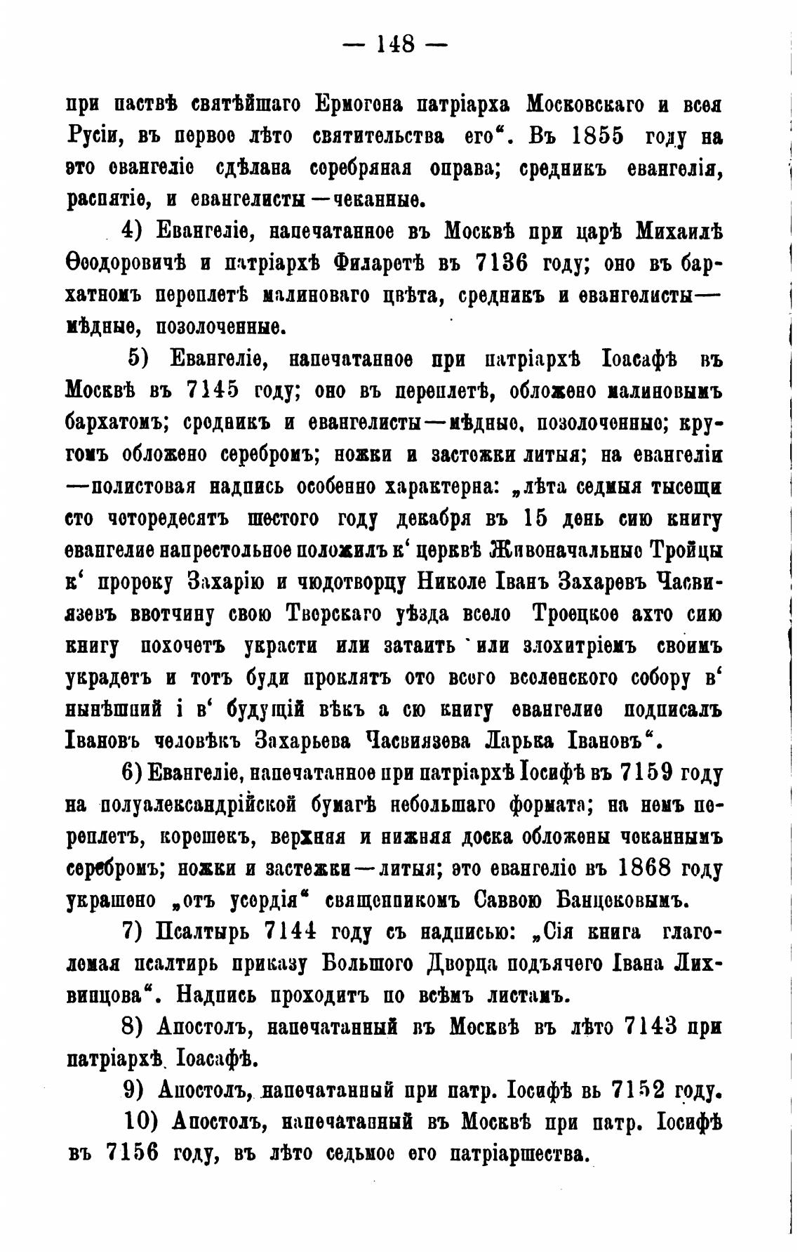 4) EBaHTHie, напечатанное въ Моск" при царгв