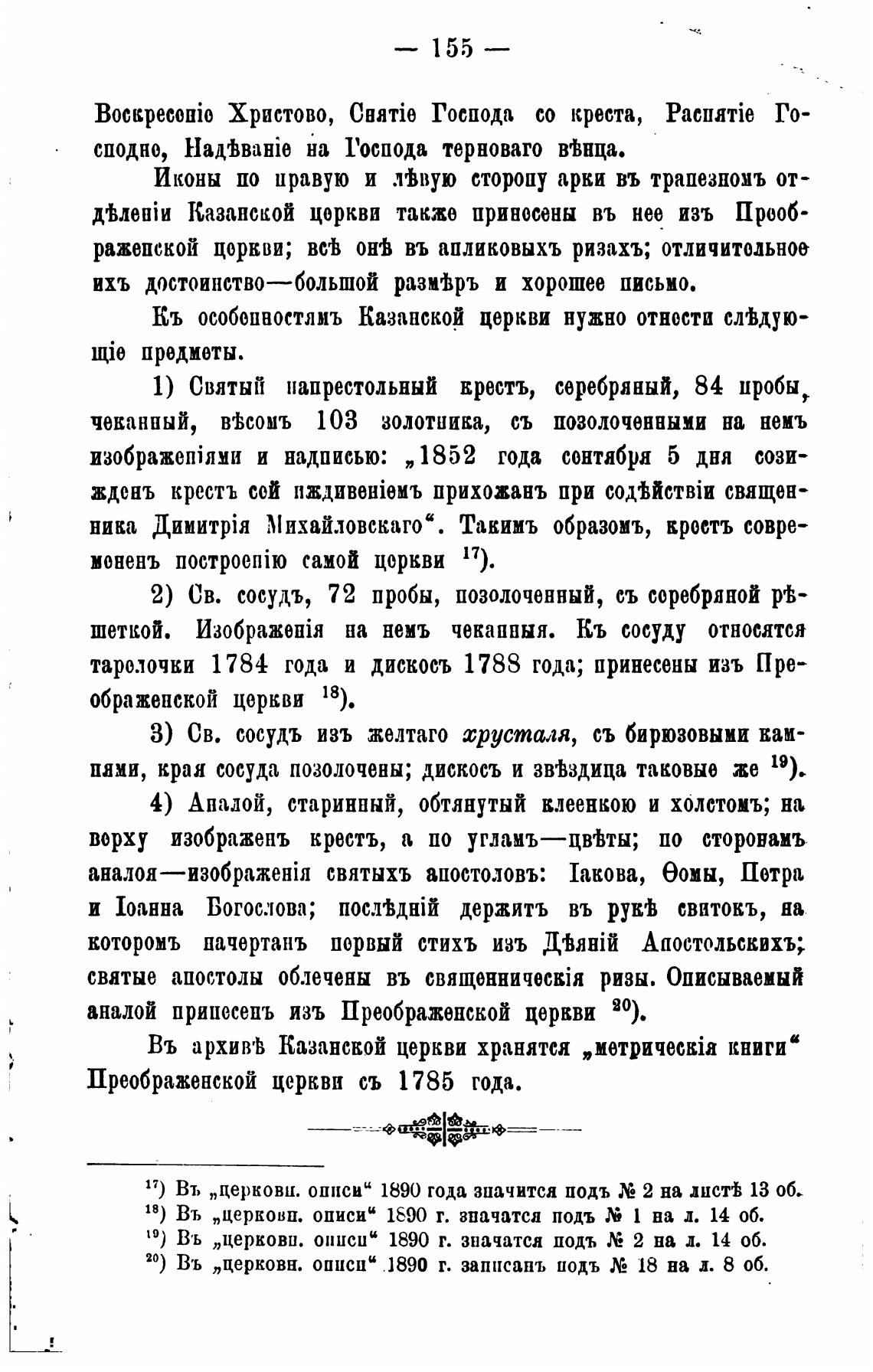 аналой прииесепъ изъ Преображенской церкви 20).