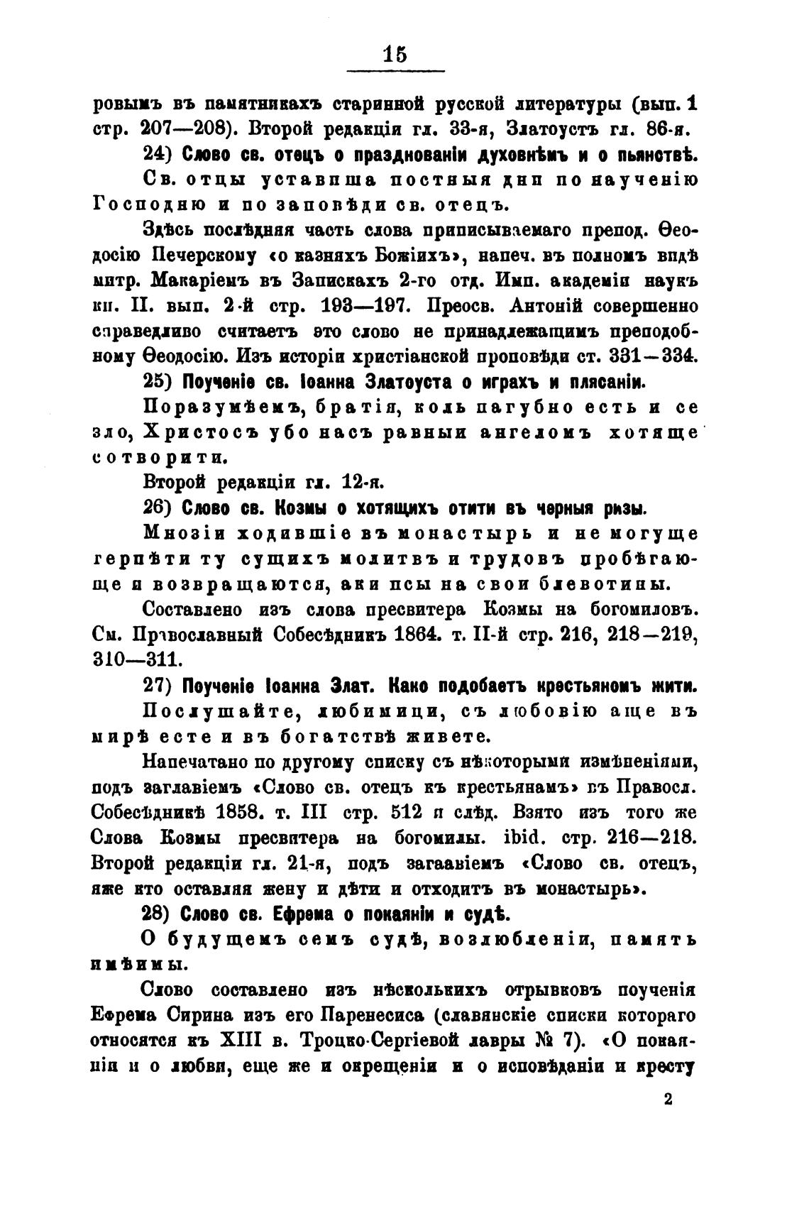 Ефрема Сирина изъ его Паренесиса (cuaBHHcRie списки вотораго