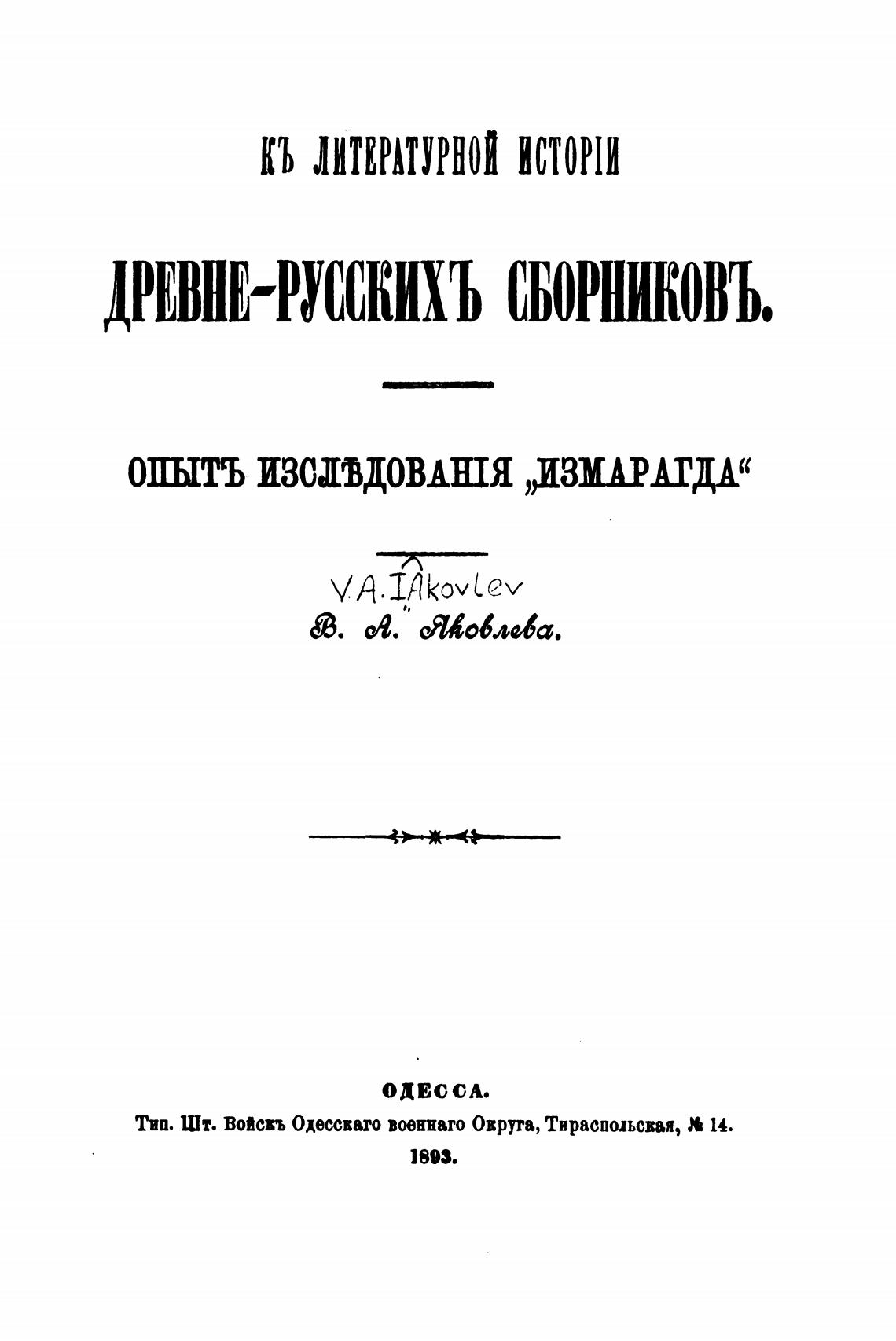 Тип. Шт. войсвъ Одессваго Оврута, Тираспольсвая, 14.