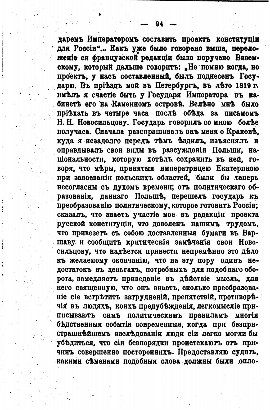 Н. Н. Новосильцову. Государь говориль со мною болВе
