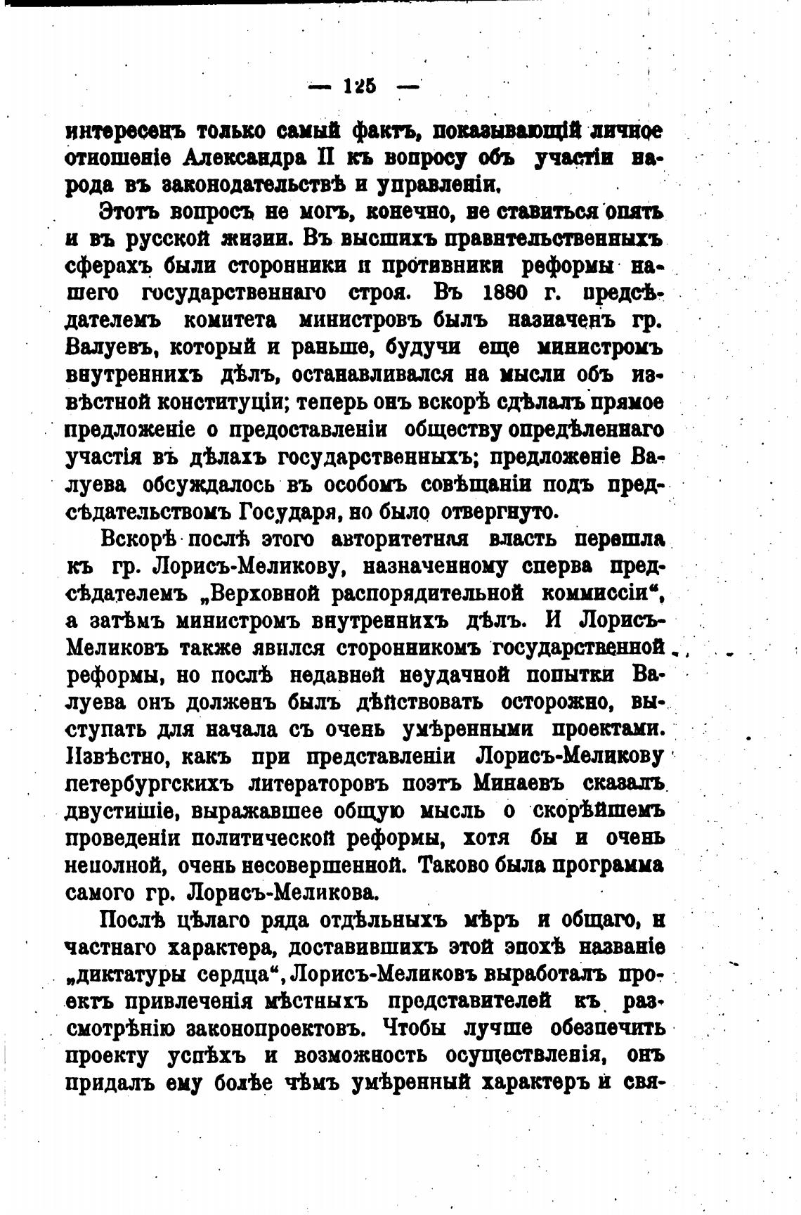 „диктатуры сердца“, Лорисъ-Меликовъ выработалъ про,
