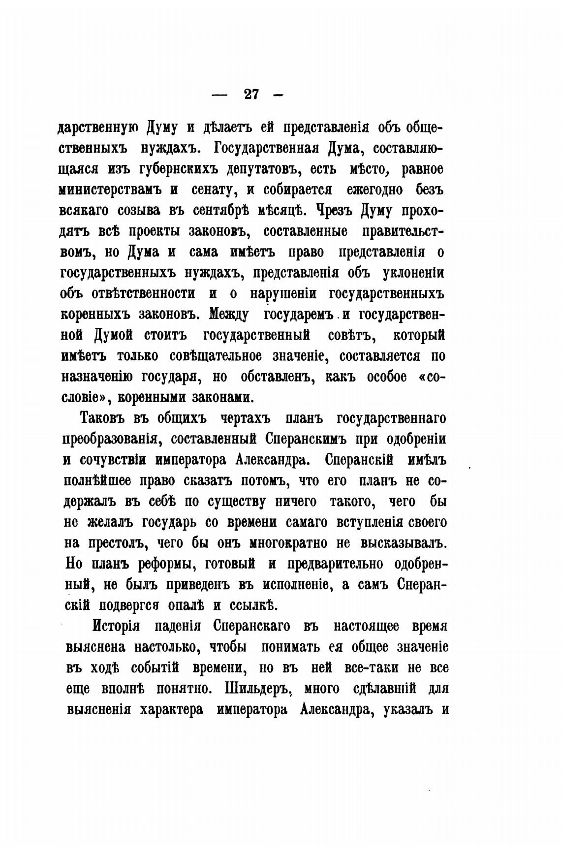 паден(я Сперанскаго въ настоящее время
