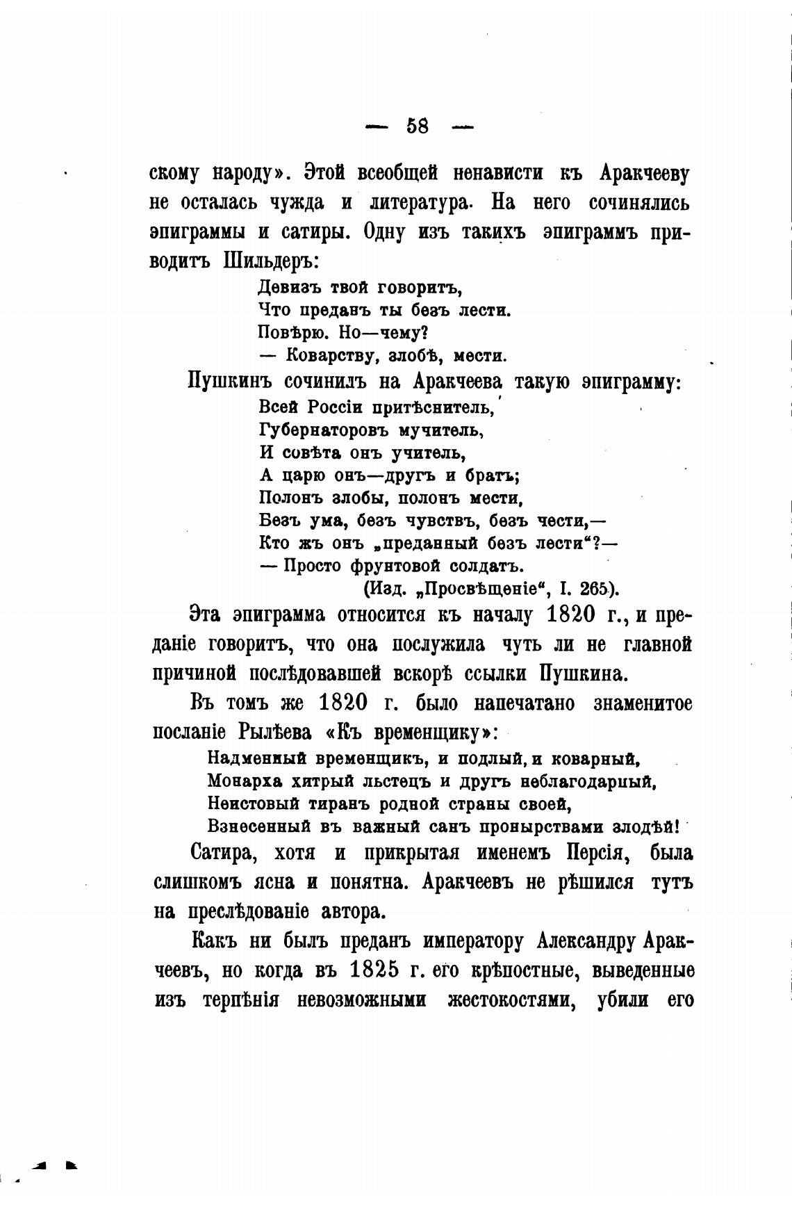 Пушкинъ сочинидъ на Аракчеева такую эпиграмму: