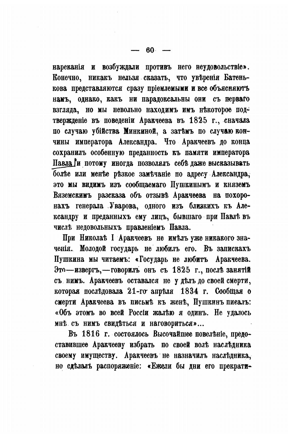смерти Аракчеева въ кь женћ Пушкинъ пиеалъ: