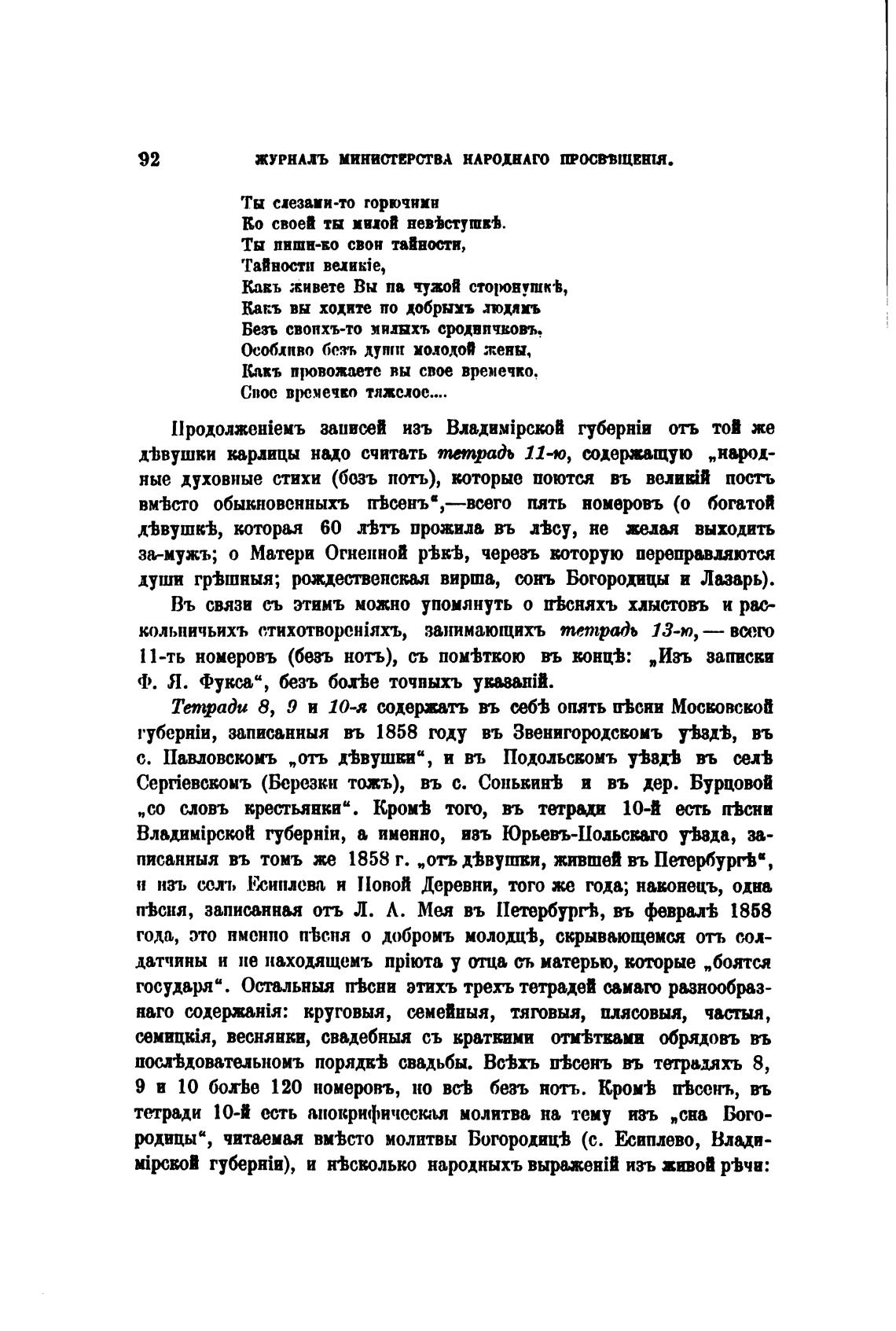 „со словъ крестьянки“. Кром± того, въ тетрми 10-й п%сни