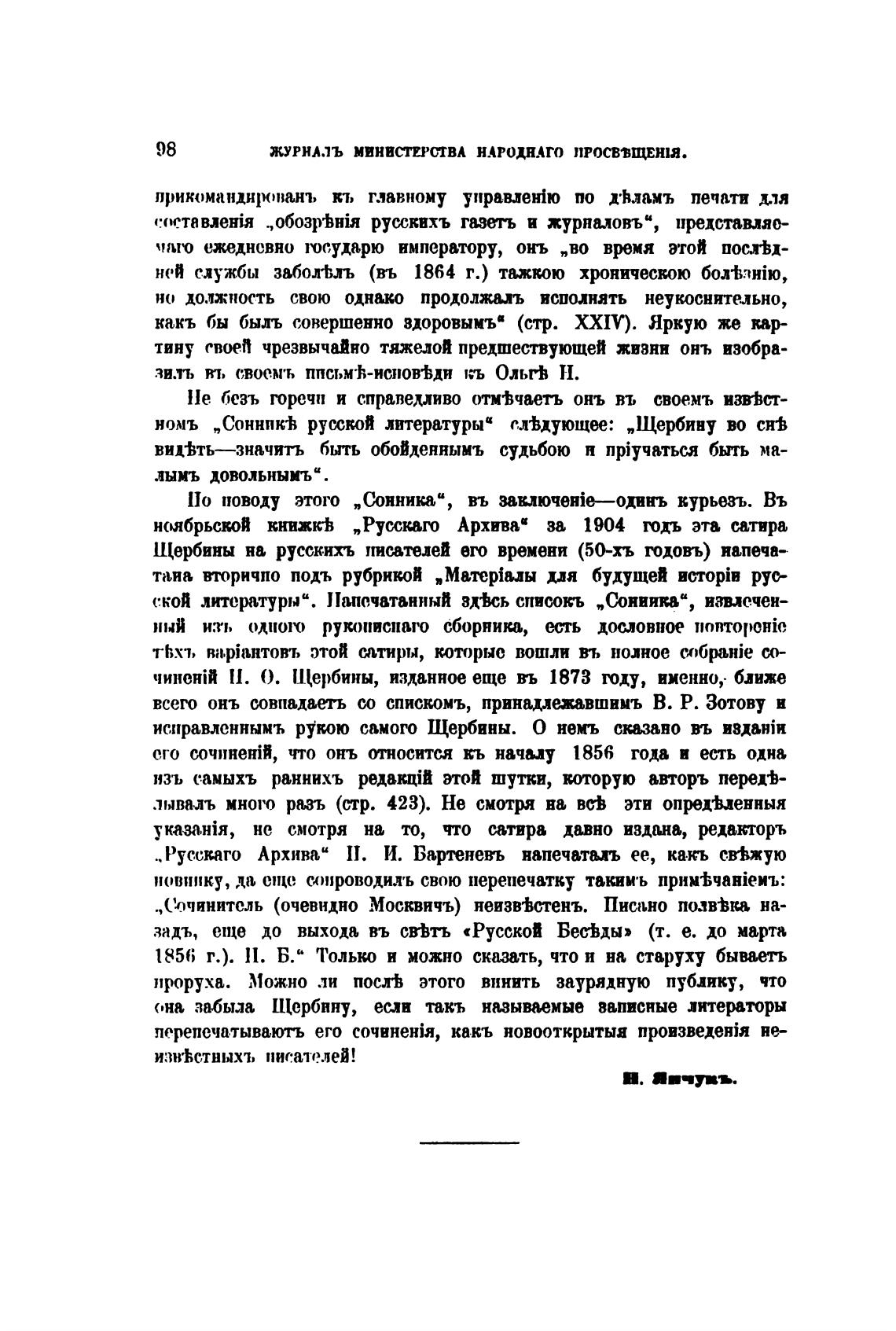 номъ „Сонник•ћ ру(пкой литературы“ сл•Ьдующж „Щербину во