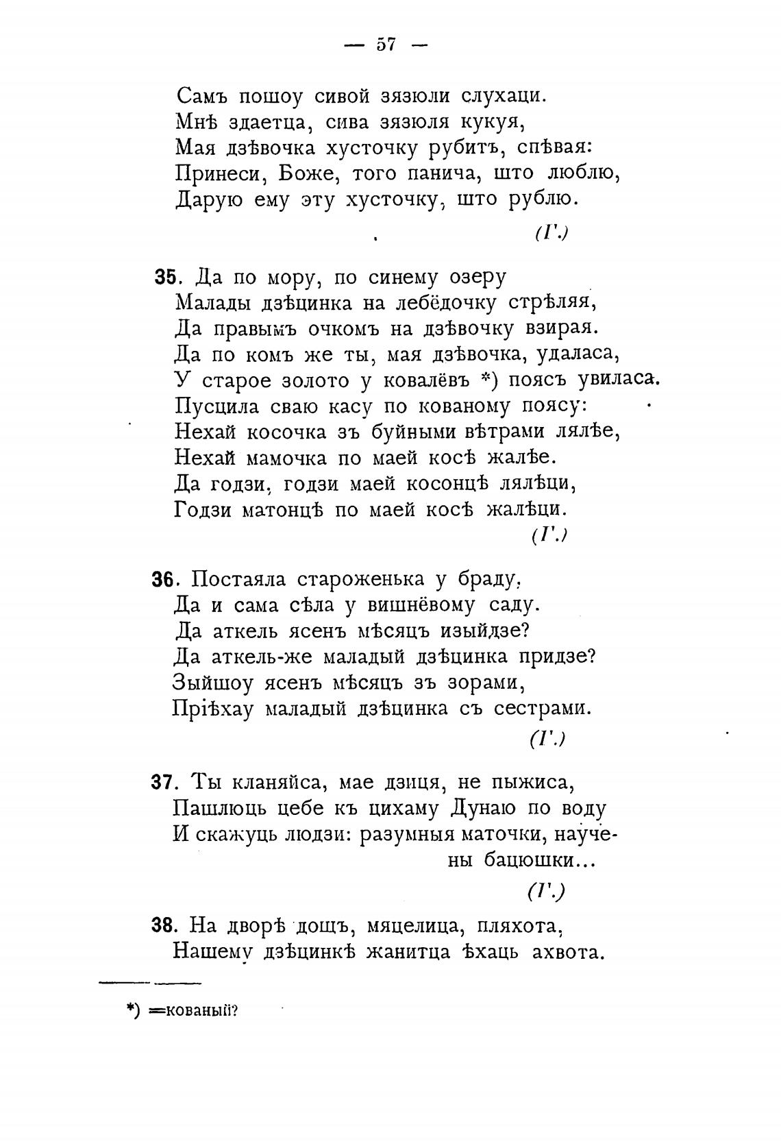 МН'Ь здаетца, сива зязюля кукуя,