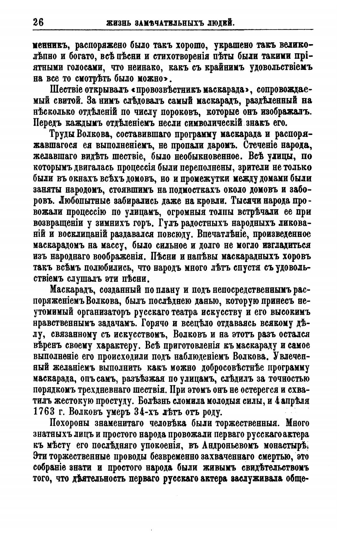 1763 г. Волковъ умерь 34-хъ Лть отъ роду.