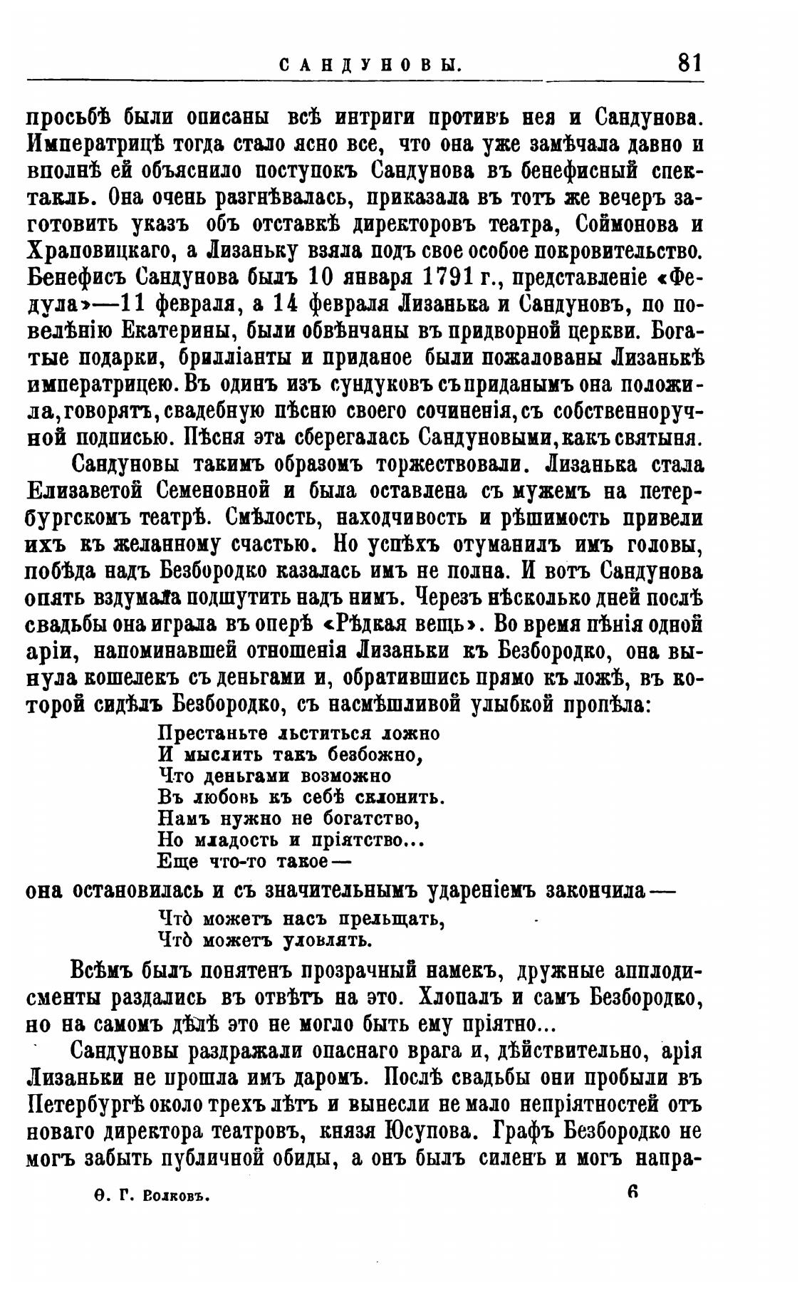 ной подписью. ТЊсня эта сберегалась Сандуновыми,какъ святыня.