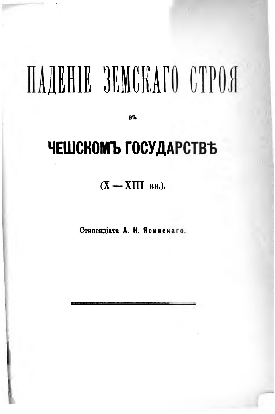 Падение земского строя в Чешском государстве (X-XIII вв. ) - Ясинский А. Н.