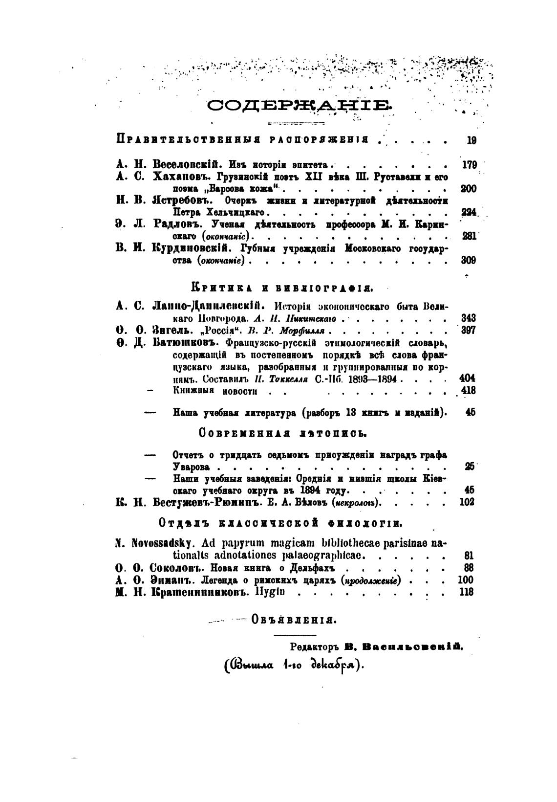 Редакторъ В. Васидьов•вИй.