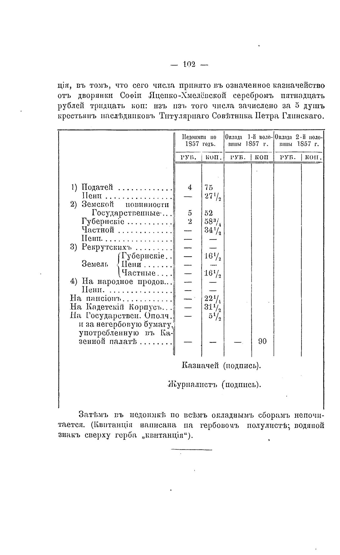тается. (КвитанцП1 написана па гербовоиъ полулистЬ; водяной