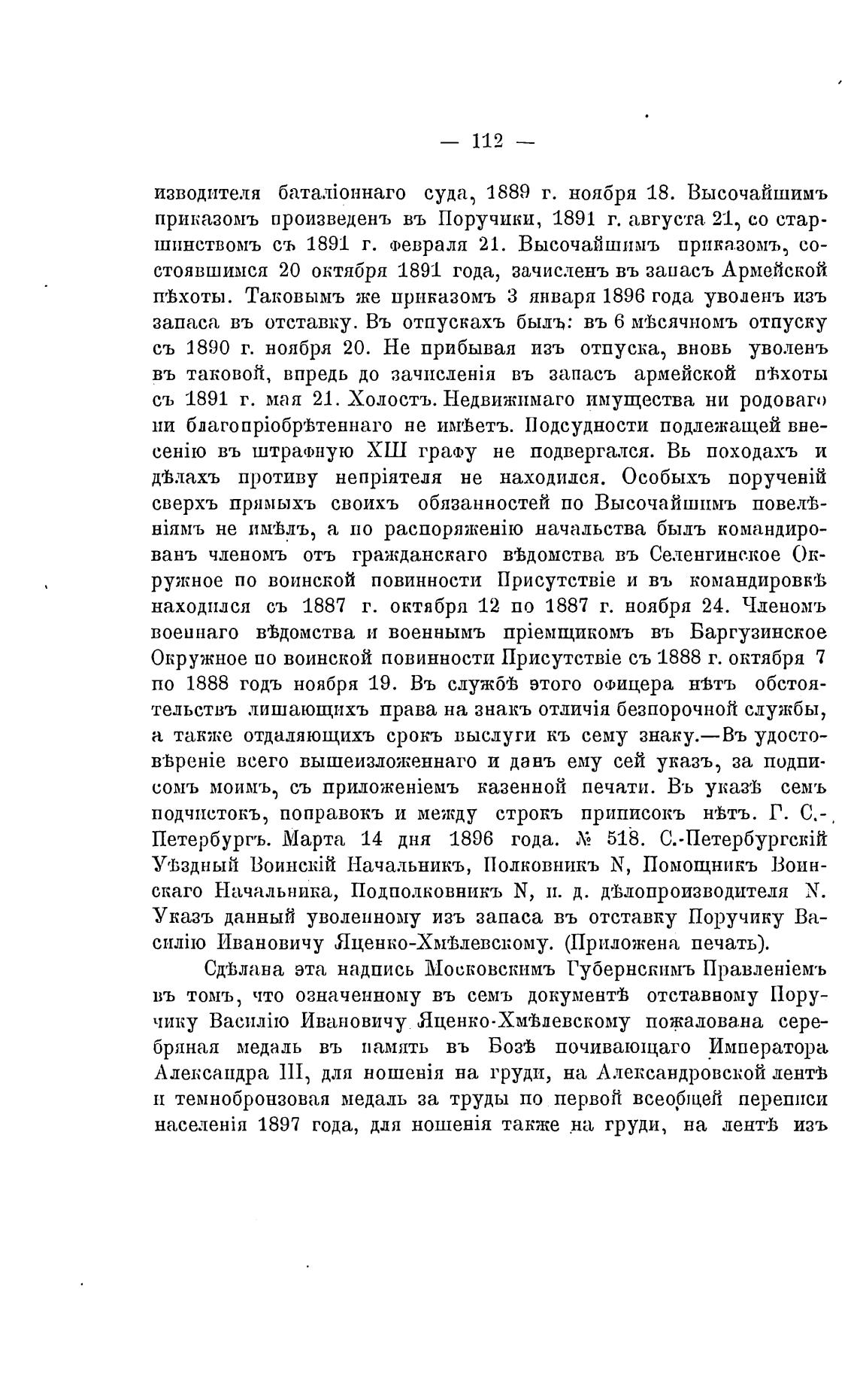 стоявшимся 20 октября 1891 года, зачислень въ заиасъ Армейской