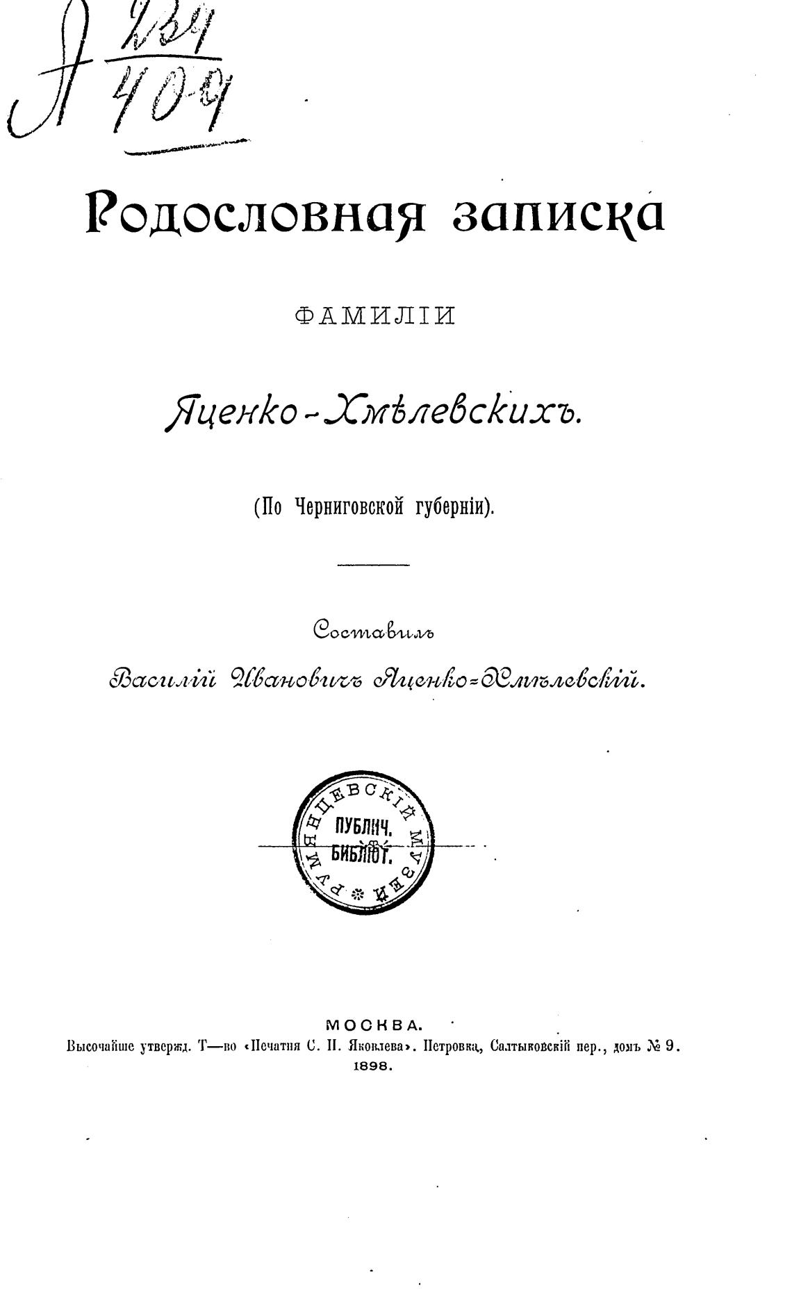 Высочайше утвержд. Т—во «Печатня С. П. Яковлева». Петровка, Салтыковс:јй пер., дояъ 9.