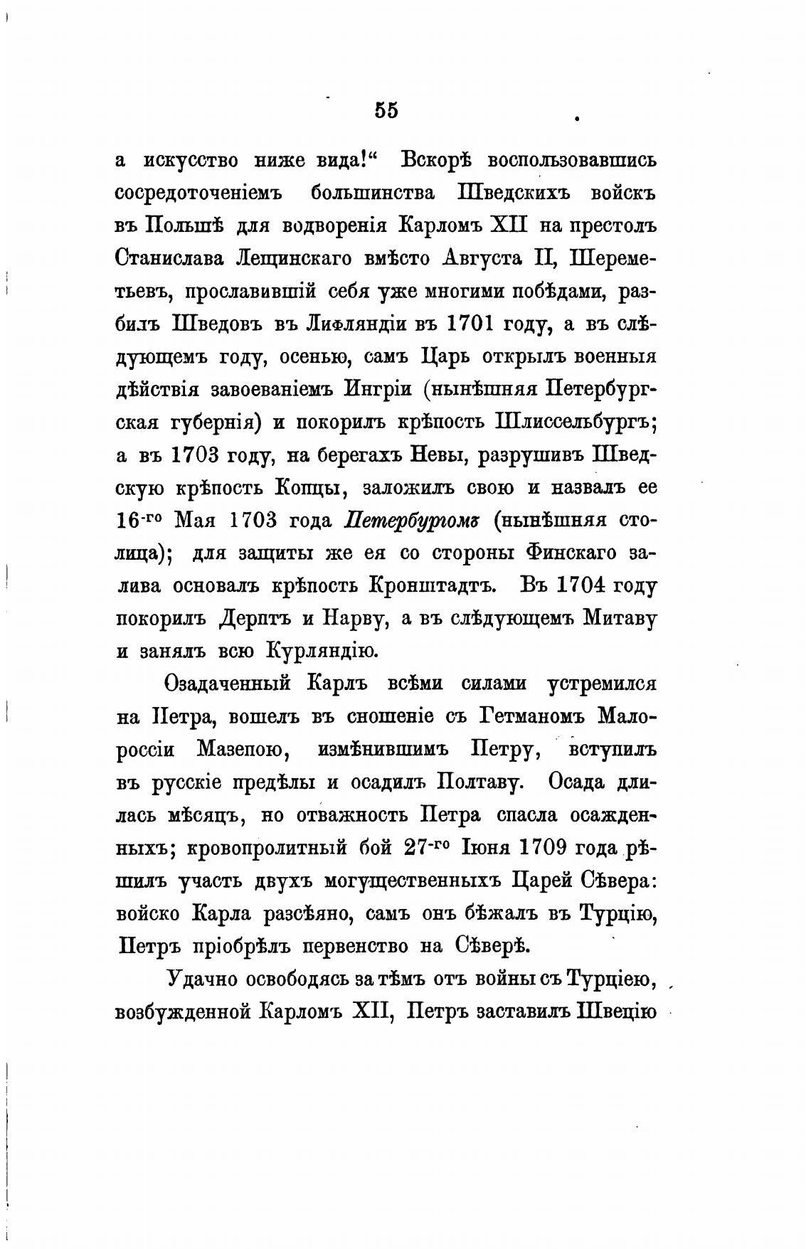 а въ 1703 году, на берегахъ Невы, разрушивъ Швед-