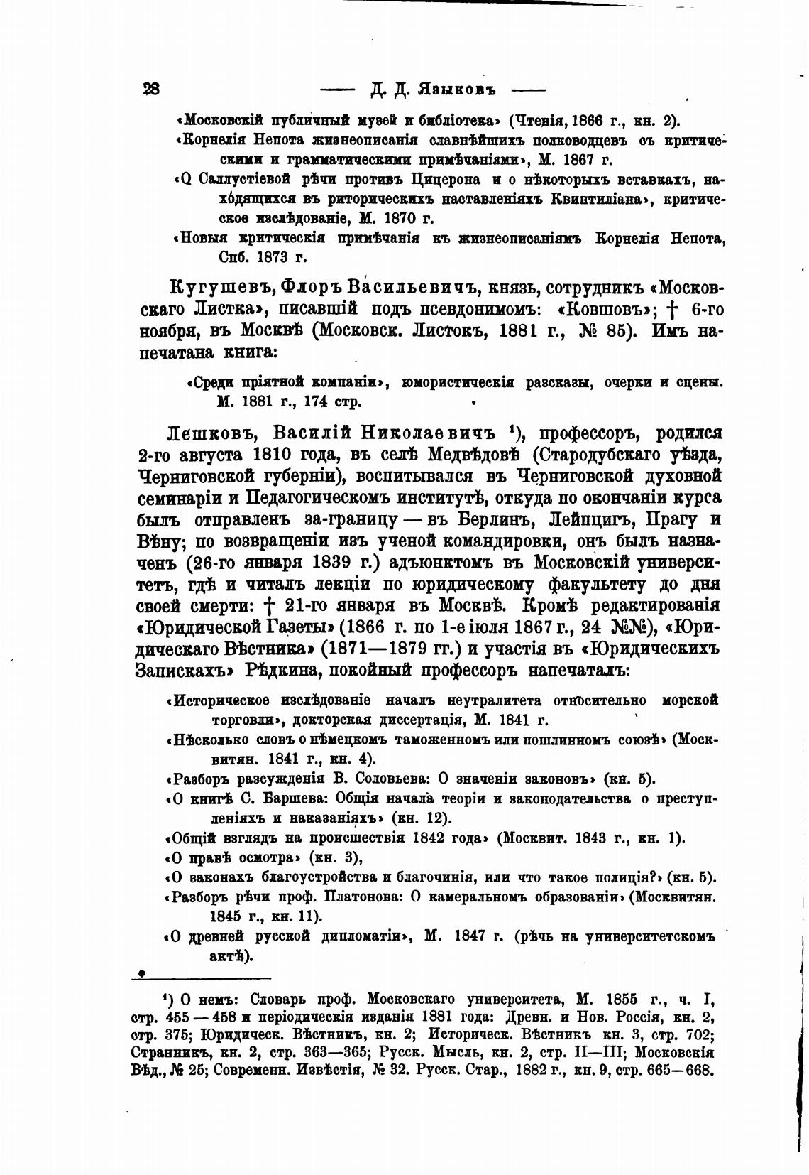 Лешковъ, Николае вичъ 1), профессоръ, родился