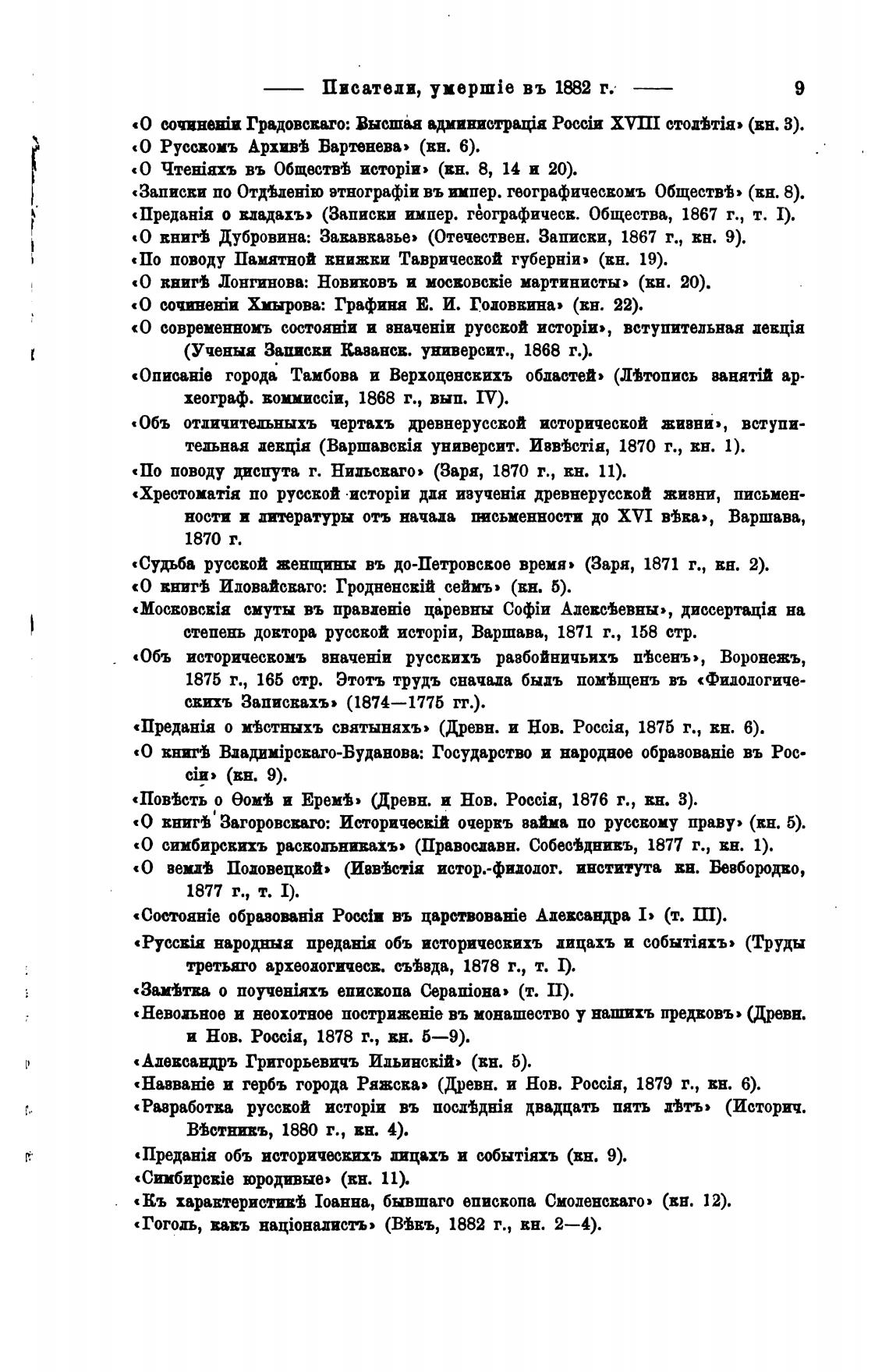 «О симбирсвихъ раскольнивахъ» (Православн. Собев%днивъ, 1877 г., вн. 1).