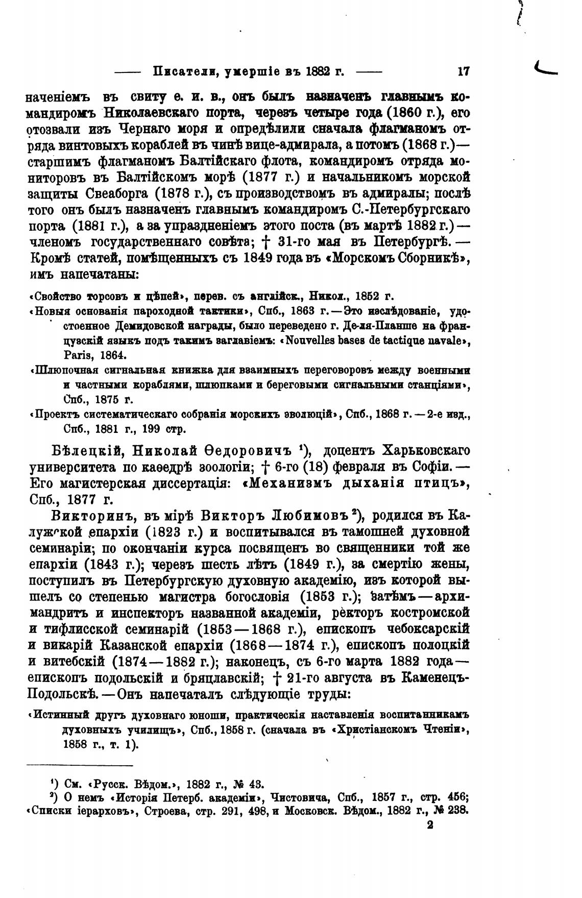 «Списки iepapxoBb», Строева, стр. 291, 498, и Мосвовсв. В%дом., 1882 г., 288.