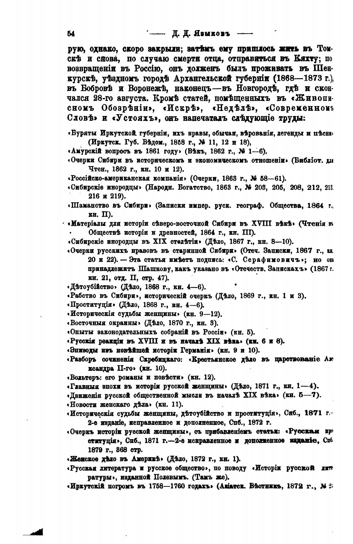 «Сибирскје инородцы въ ХИХ стедни• (ДТдо, 1867 г., вн. 8—10).
