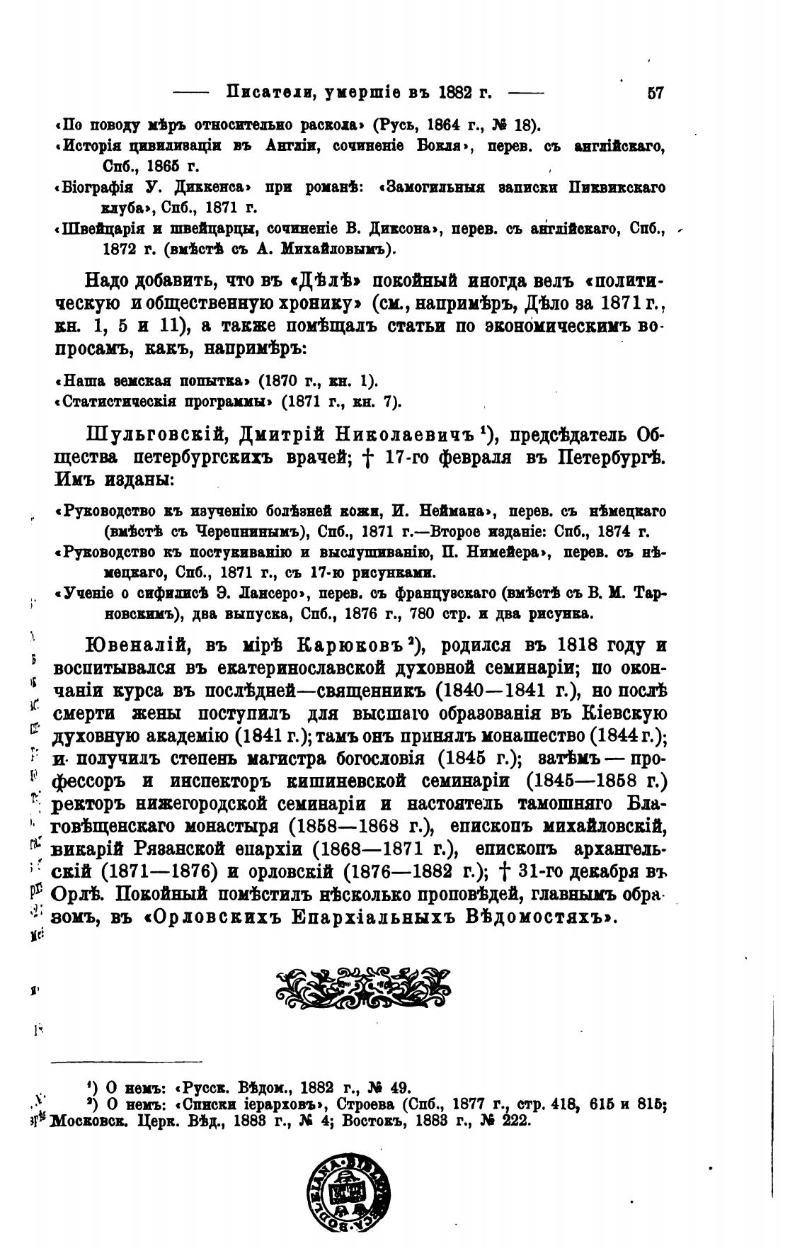1) О немъ: «Русев. В%дои., 1882 г., 49.