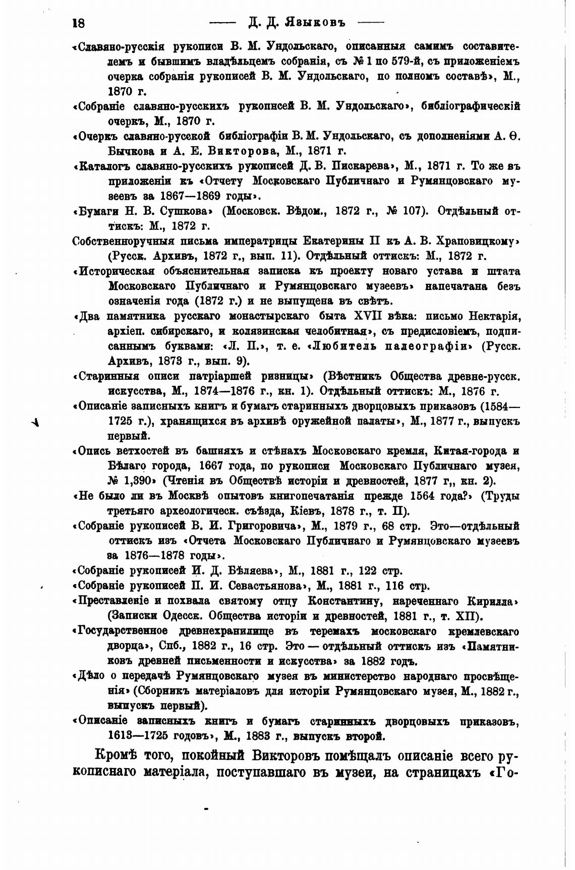 очерка рукописей В. М. Ундодываго, по полномъ состав±», М.,