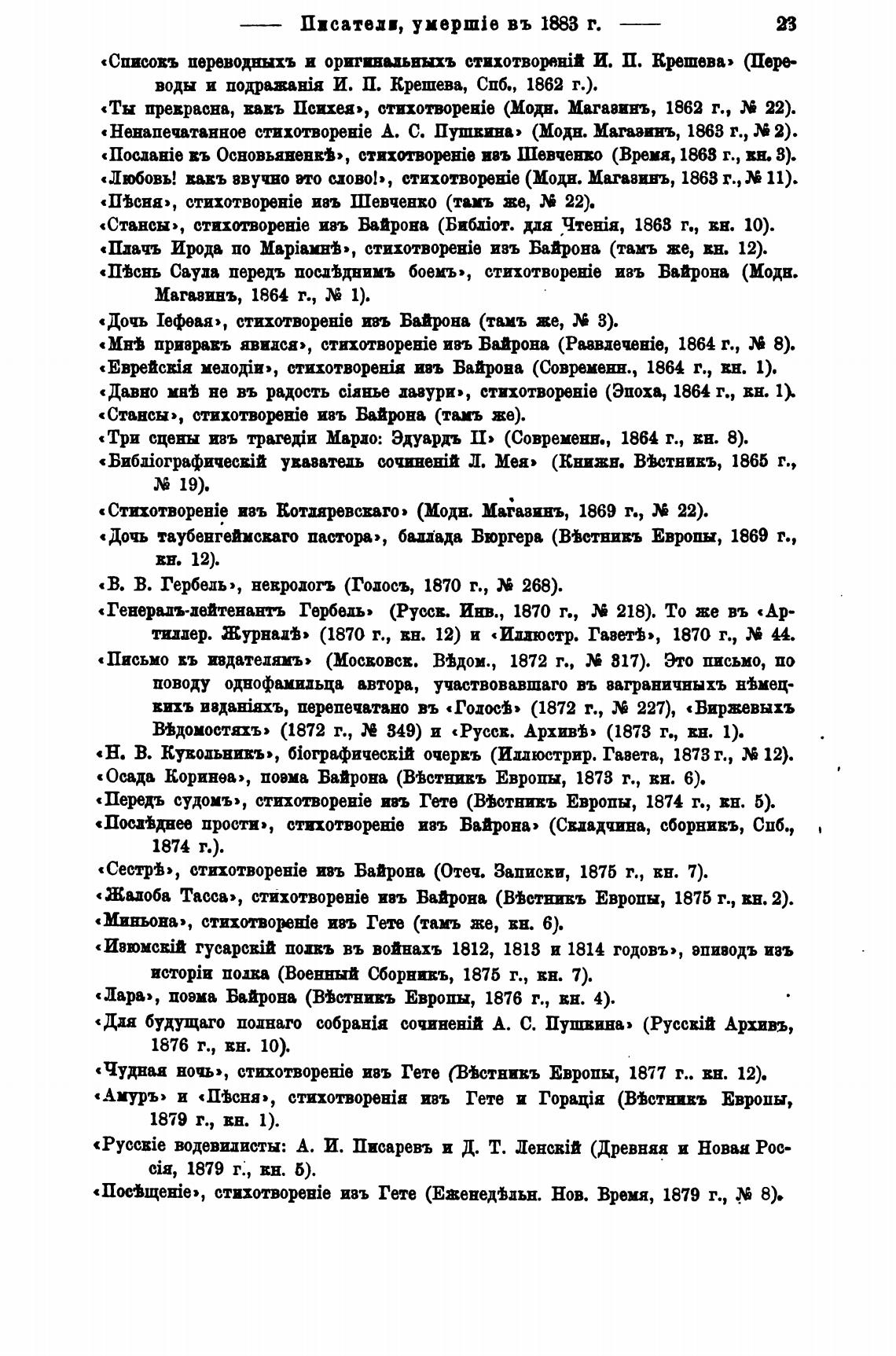 «Стансы», cnxnmpezie изъ Њйрона (БибЈот. џя 1868 г., вв. 10).