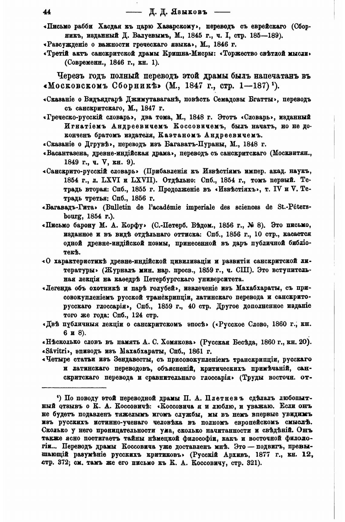 «ДМ пубдичныя демпи о санскритсвомъ впосгь» («Русское Сдово, 1860 г., кн.