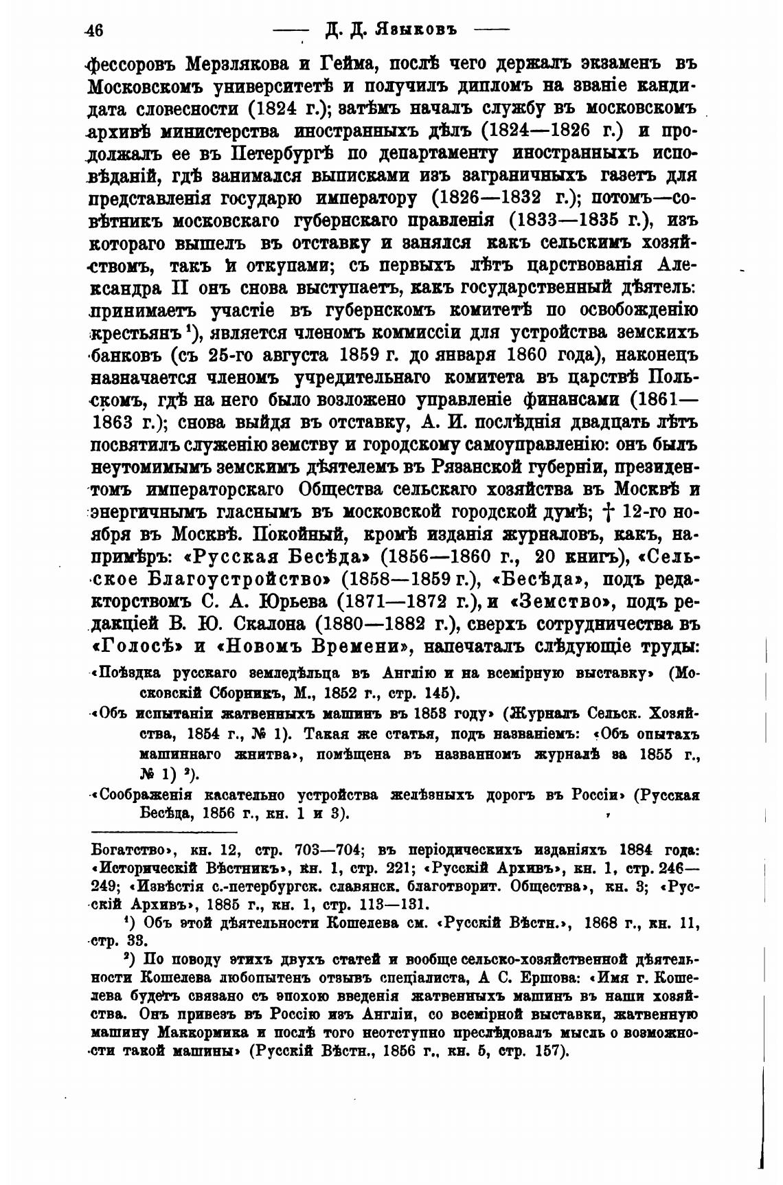 В'Ьстнивъ», пн. 1, стр. 221; «Русскт Архивы, кн. 1, стр. 246—
